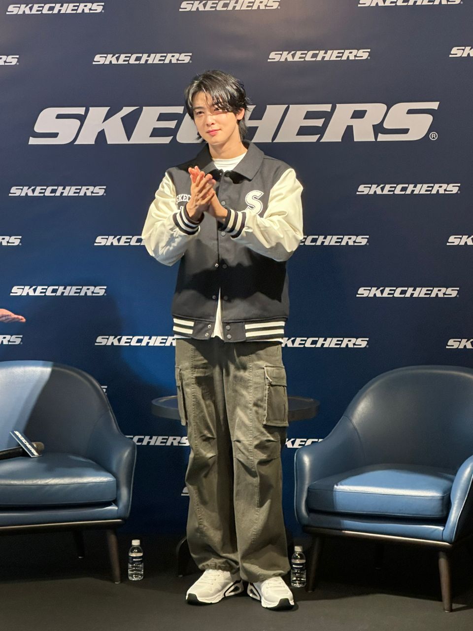 在记者会结束前,主持人突然在口袋中掏出“爱心”撩车银优,他超淡定双手合十表示感谢,也礼貌比爱心手势回馈,可谓非常礼貌!他之后也到了TRX为SKECKERS旗舰店站台,与粉丝们近距离见面。