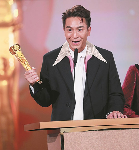 马国明得悉获奖时即露出天然呆表情,上台后则笑言:“去年最高收视3部剧我都有份参演,我当赢了!感谢家人和老婆(汤洛雯),她开心就好,开心旺夫。”