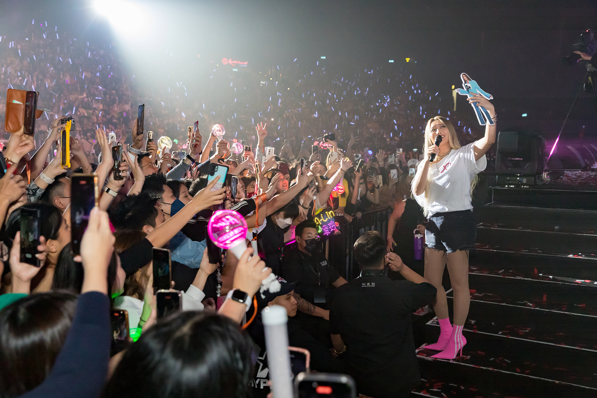 之后她潇洒脱下鞋子演唱好几首歌曲,有歌迷大喊:以要你的鞋子吗?”原本想要舒舒服服的继续赤脚唱歌,不过她笑说:“他们(工作人员)还是想要我穿上高跟鞋比较漂亮。”有歌迷在场点歌《扑火》,她超疼歌迷清唱了一小段。演唱会接近尾声后,歌迷们纷纷不够喉狂喊安哥,她笑笑说:“我们等下开午夜场凌晨三点的!”不过她也约定歌迷下一次再见,并说了:“Terima Kasih。”留下了这美好回忆的夜晚。