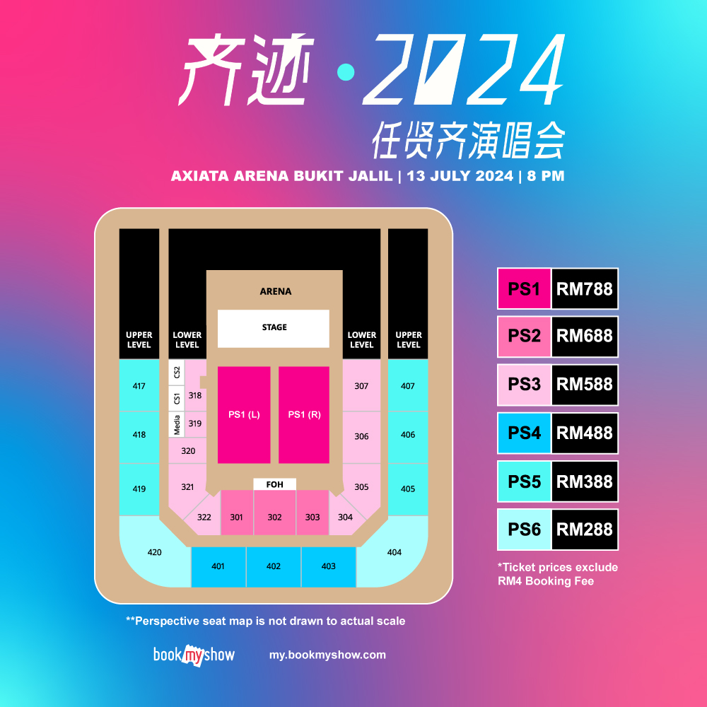 任贤齐《齐迹》马来西亚演唱会将于2024年7月13日(星期六),晚上8时在Axiata Arena 举办,演唱会门票价格分为788令吉(PS1)、688令吉(PS2)、588令吉(PS3 )、488令吉(PS4)、388令吉(PS5)及288令吉(PS6)。