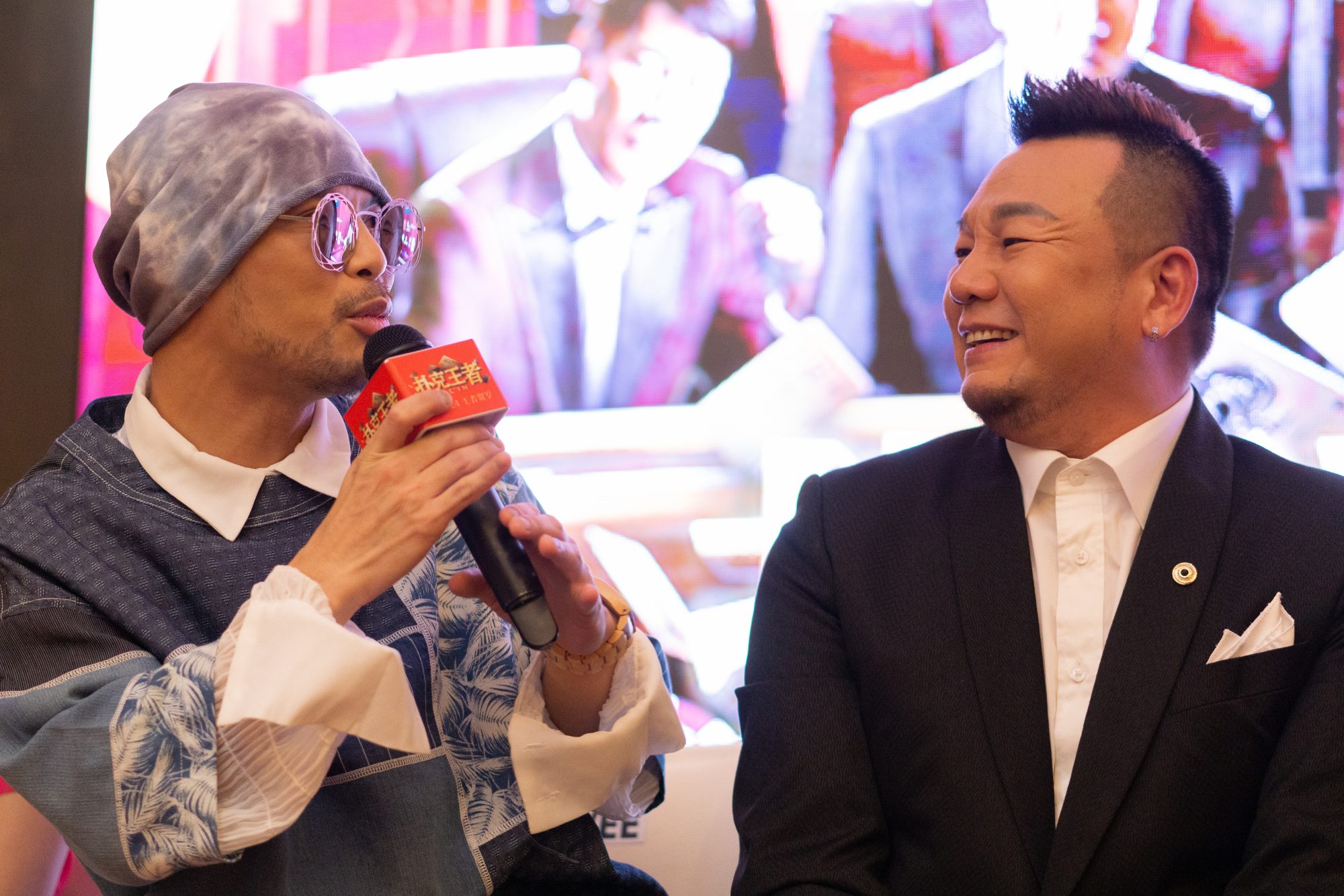 【记者会】林德荣和姜皓文在贺岁电影《扑克王者》里有“基情”画面,姜皓文还牺牲色相走路扭屁股,他自豪屁股够圆润,不需要塞道具,笑翻全场!