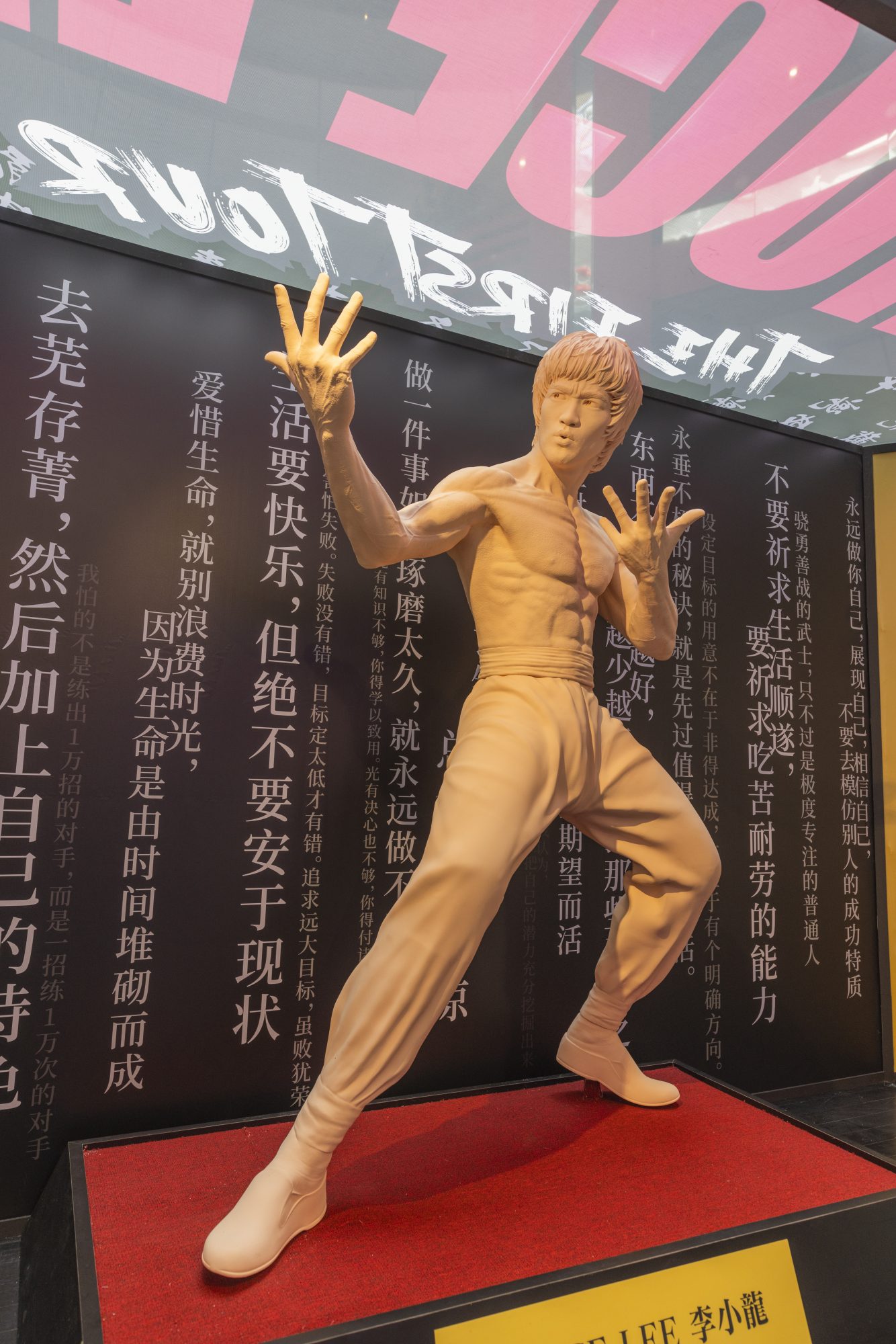 这次的展览也是首次将李小龙的铜像带到香港以外的海外展出,高达2.5米的铜像展示了李小龙在1972年电影《精武门》里“准备出击”的标志性经典动作。参观展览者可参与独特的拍照环节,模仿李小龙的姿势与铜像合照,并将获得特制的磁性相框作为纪念品。