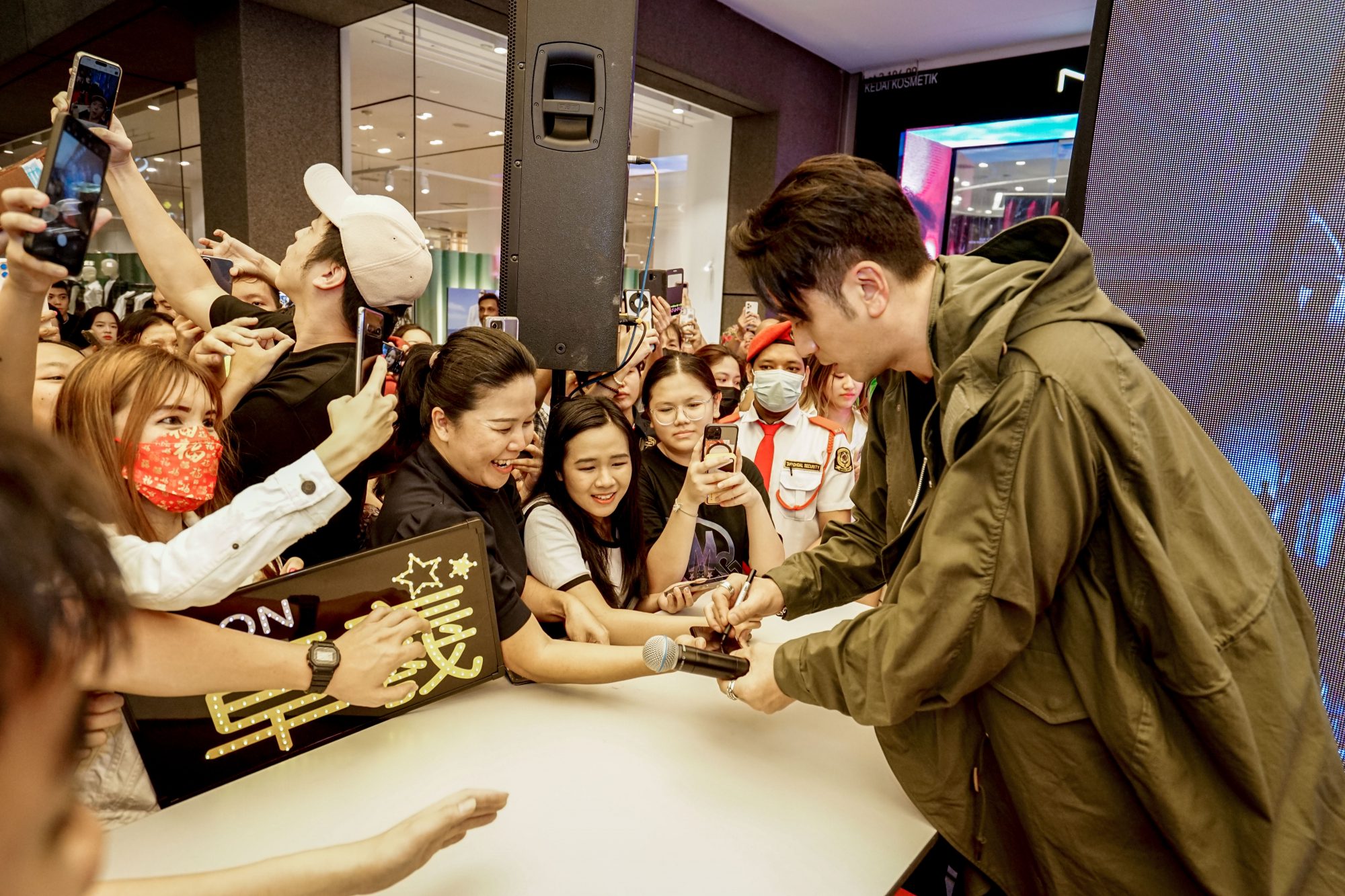 这次吴卓羲与一众人将会在吉隆坡、怡保及槟城造势宣传,他们首晚在柏威年广场的首映礼见面会上,吸引了超多影迷前来一睹他们的风采,而不少女 粉丝是冲着“哥哥”吴卓羲而来,所以当他一出场,即引起全场骚动,一众人可谓“突破”人潮才抵达到会场。