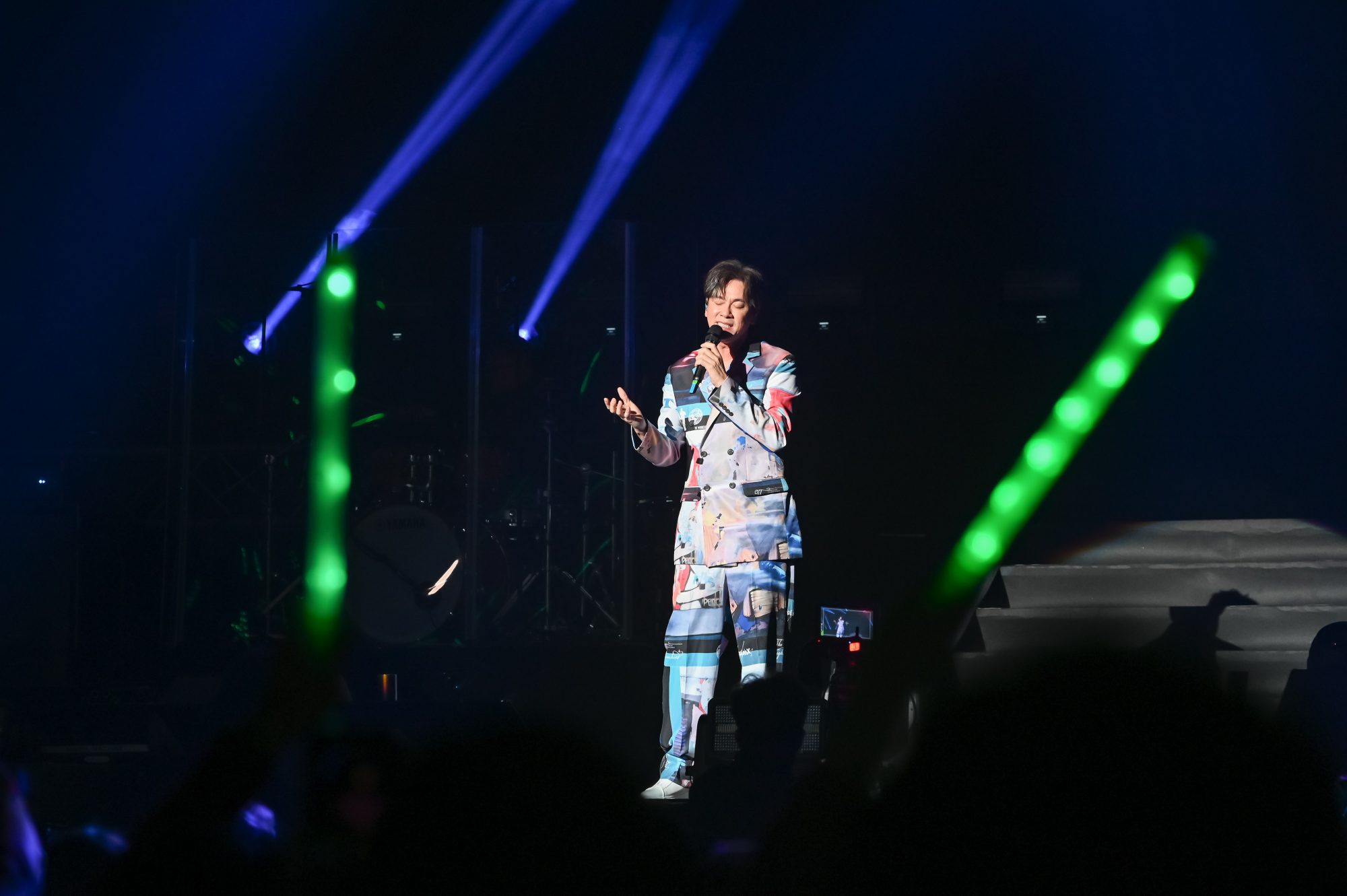 在献唱多首歌曲之后,他鬼马问歌迷还想听什么歌,下秒就搞笑说:“不会又是《痴心绝对》吧?!还想《痴心绝对》吗?”不过原来他已经准备了小惊喜,“这是我(出道)25年来,最最难忘的,我要给大家一个surprise!”
