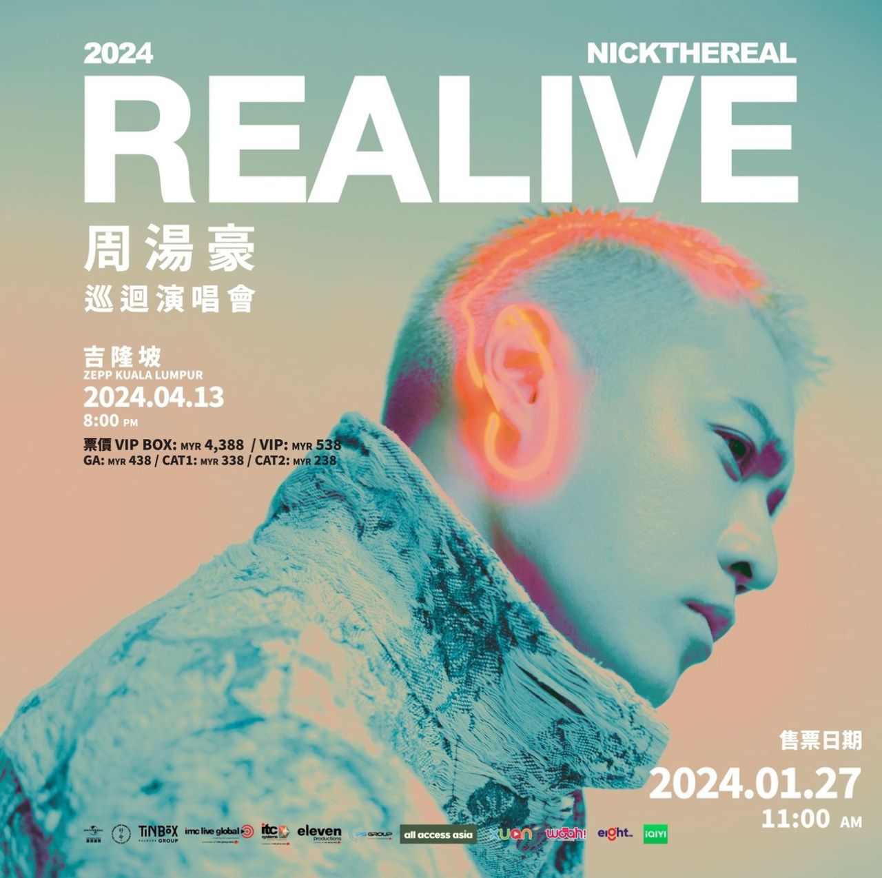 票价:RM698(VIP)、RM588(CAT 1)、RM368(CAT 2)、RM268(CAT 3)