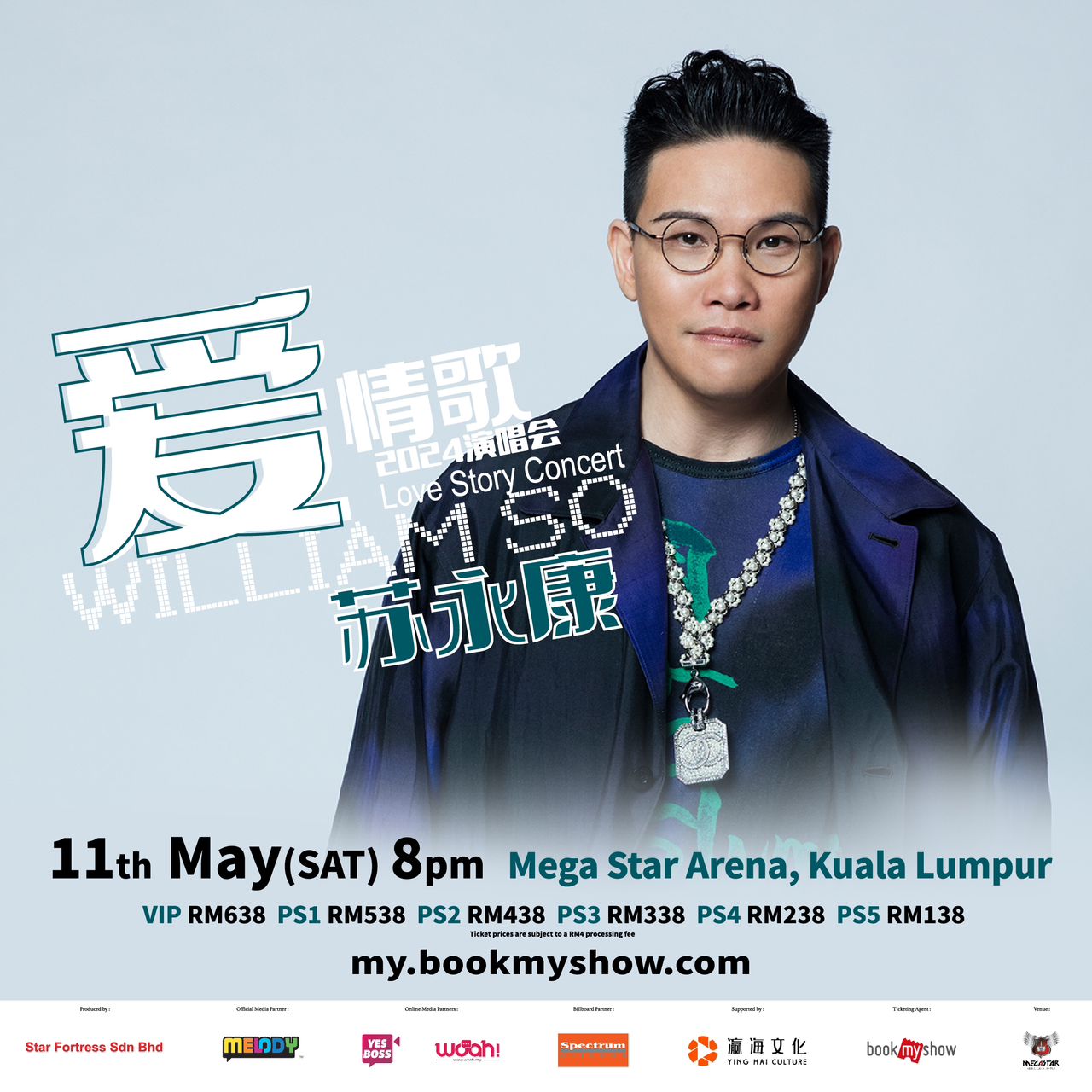 票价:RM588(VIP)、RM488(PS1)、RM388(PS2)、RM288(PS3)、RM188(PS4)