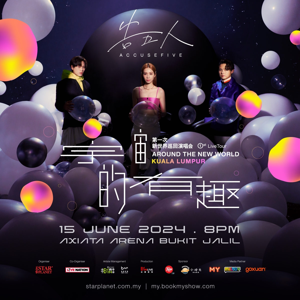 哈瓜们! 好消息终于传到马来西亚! 超人气乐团告五人宣布,他们将于6月15日,晚上8点,在吉隆坡 Axiata Arena Bukit Jalil室内体育馆举办《告五人第一次新世界巡迴演唱会【宇宙的有趣】》,继续带给粉丝们宇宙般的乐趣。