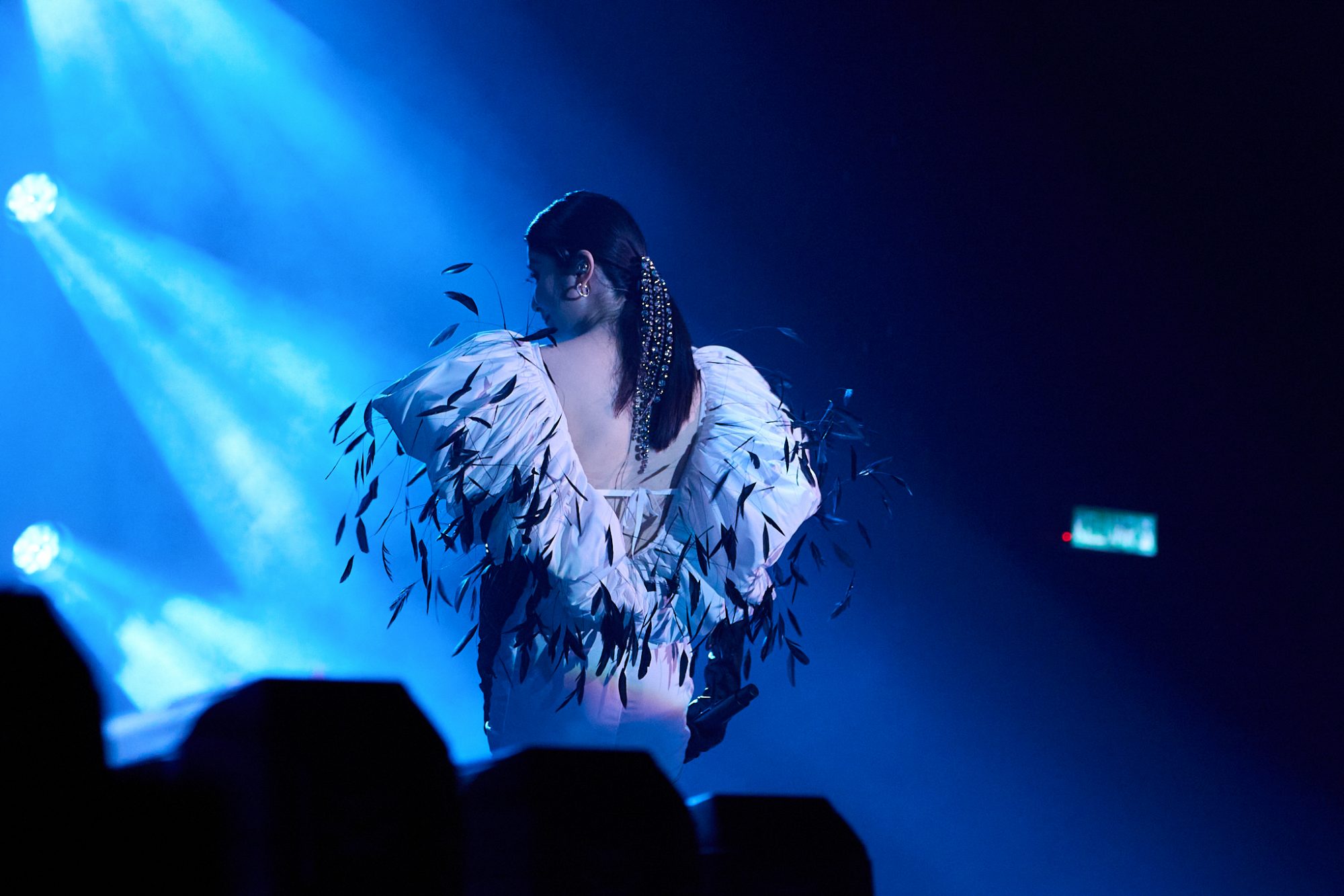 陈慧琳当晚的造型多变,每套都精心设计,非常好看,其中一套全白、上半身有黑色羽毛设计的衣服,陈慧琳笑说觉得自己像“复活蛋”,之后背对着大家喝水时,无意间秀出美背,粉丝大赞很美,她搞笑回应称可以背对大家唱整首歌!