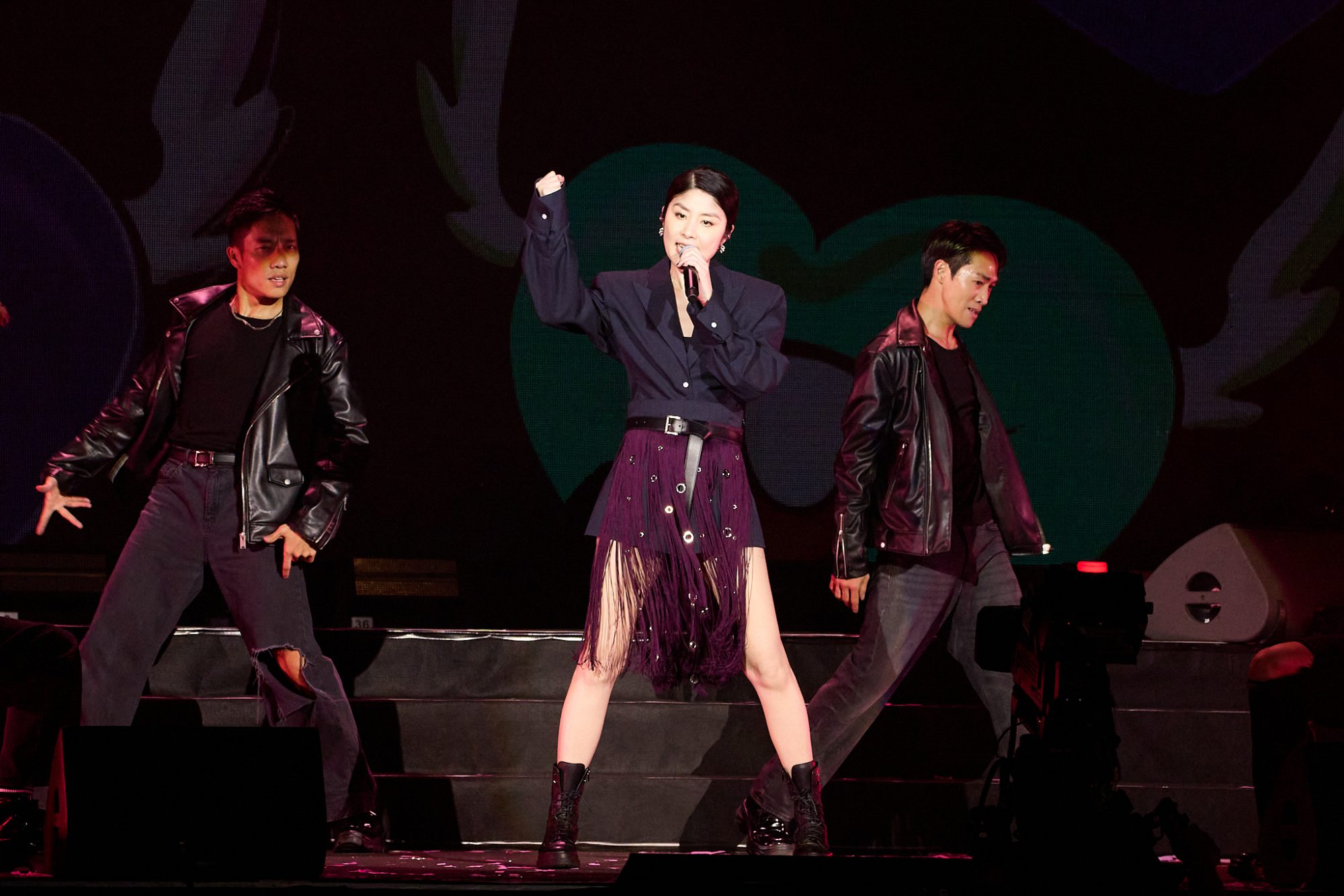 她一连唱跳多首经典歌曲,肺活量超高,演唱《恋爱情色》时已经接近演唱会尾声,她超热情喊全场站起来跳舞,现场气氛高涨!在2小时的秀正式结束后,她大喇喇喊说:“搞定了,我可以吃榴莲了!拜拜,Terima Kasih,下一次再见!”让大家超级不舍离开。