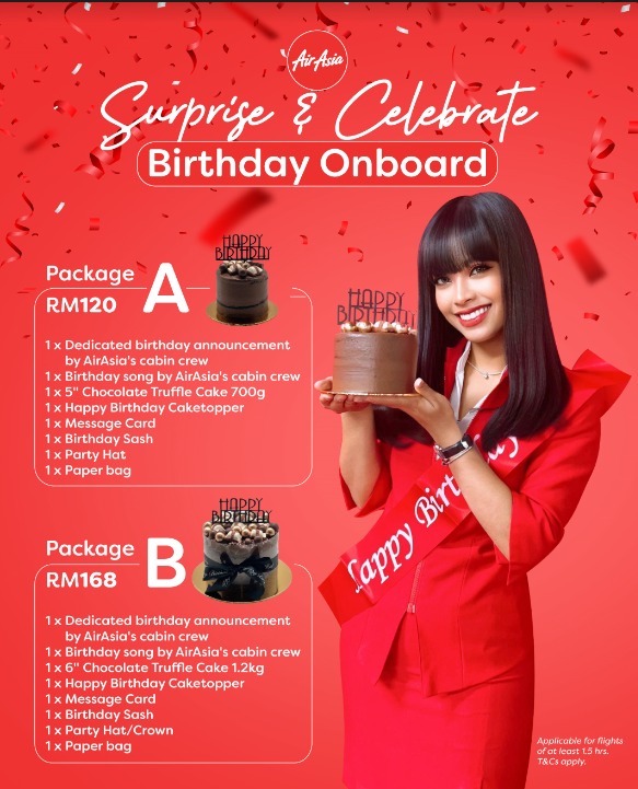 AirAsia航空推出“空中庆生套餐 ”最低只需RM120 4 Apr , 2024 | 吃喝玩乐 今年的生日庆祝计划已经想好了吗?想给闺蜜、另一半或者家人一个盛大的生日惊喜?为何不考虑一次独特的体验,来一场别开生面的「天上飞」庆典呢? AirAsia推出了全新的空中庆生套餐,价格非常亲民,赶紧预订这特殊的生日套餐,让你在飞行中度过一个难忘的生日! 2种套餐 RM120RM168 航班飞行时间 最少1小时45分钟 套餐中包含了蛋糕、贺卡、空中祝福等,让你在飞机上的生日庆祝也能充满仪式感!赶快安排起来,为今年的生日增添一份别样的惊喜吧! 詠歆 资料整理报道 分享