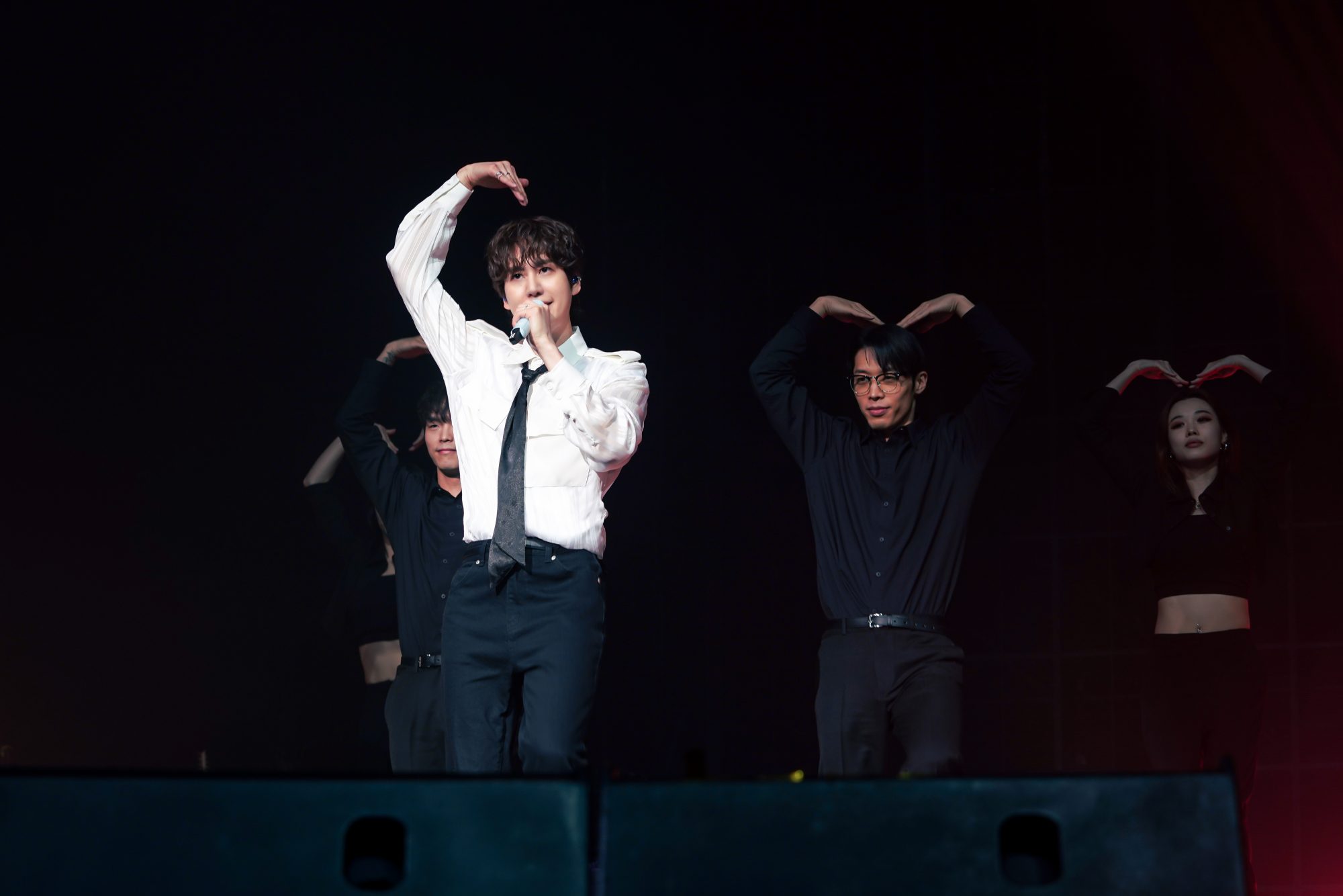 曺圭贤当天其实处于感冒状态,甚至一度失声差点要取消演出,但每一首歌仍是超乎标准的演绎,除此之外,他还是准备了唱跳舞曲的部分,让歌迷可以感受到他抒情与动感并存的魅力,尤其是演唱所属团体Super Junior的歌曲《Devil》、《Black Suit》以及红到现在的《Sorry Sorry》,更是引起歌迷们的超分贝尖叫,连应援声都能完全无误喊出,难怪圭贤开心得将耳麦脱下,为的就是聆听歌迷们的应援声,偶像与歌迷们的双向奔赴只能说太感人了!