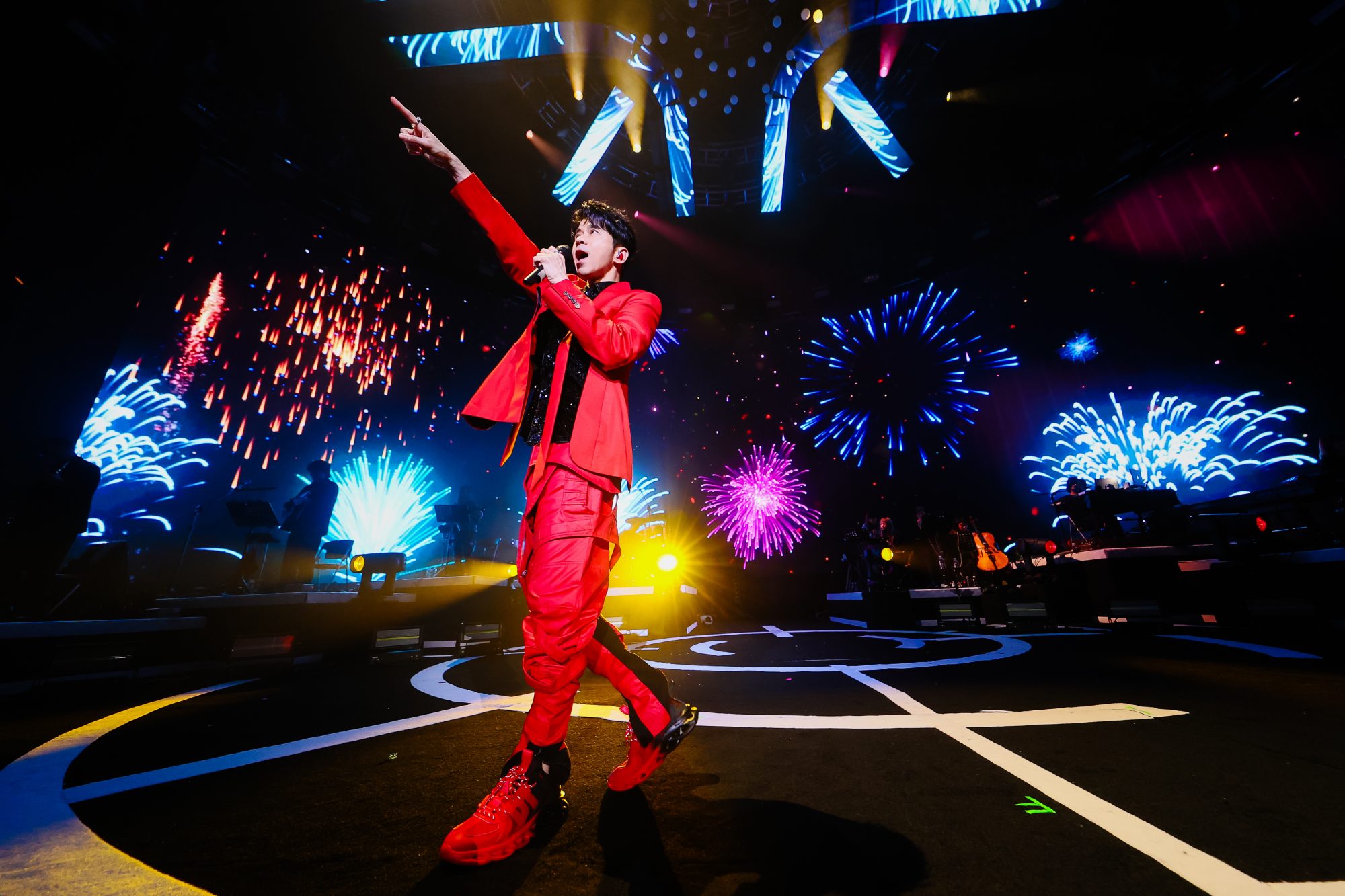 在演唱写给梁静茹《勇气》时,他临场要VIP、二楼和三楼的歌迷PK互动,大合唱让他非常震撼又感动。他在中场时,看到了羽球国手陈炳顺坐台下支持,还笑问大家有没有拿到签名。他还透露家人、阿姨、表妹等都抢票坐台下支持。