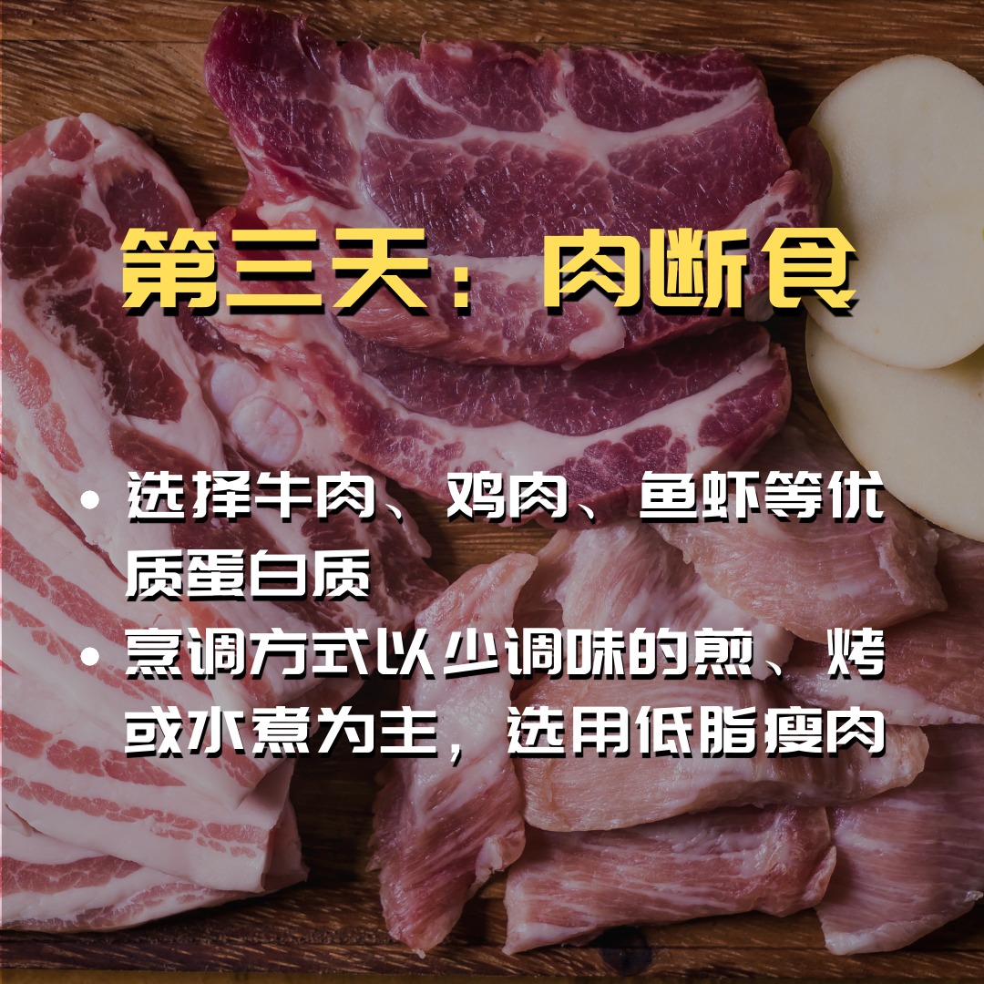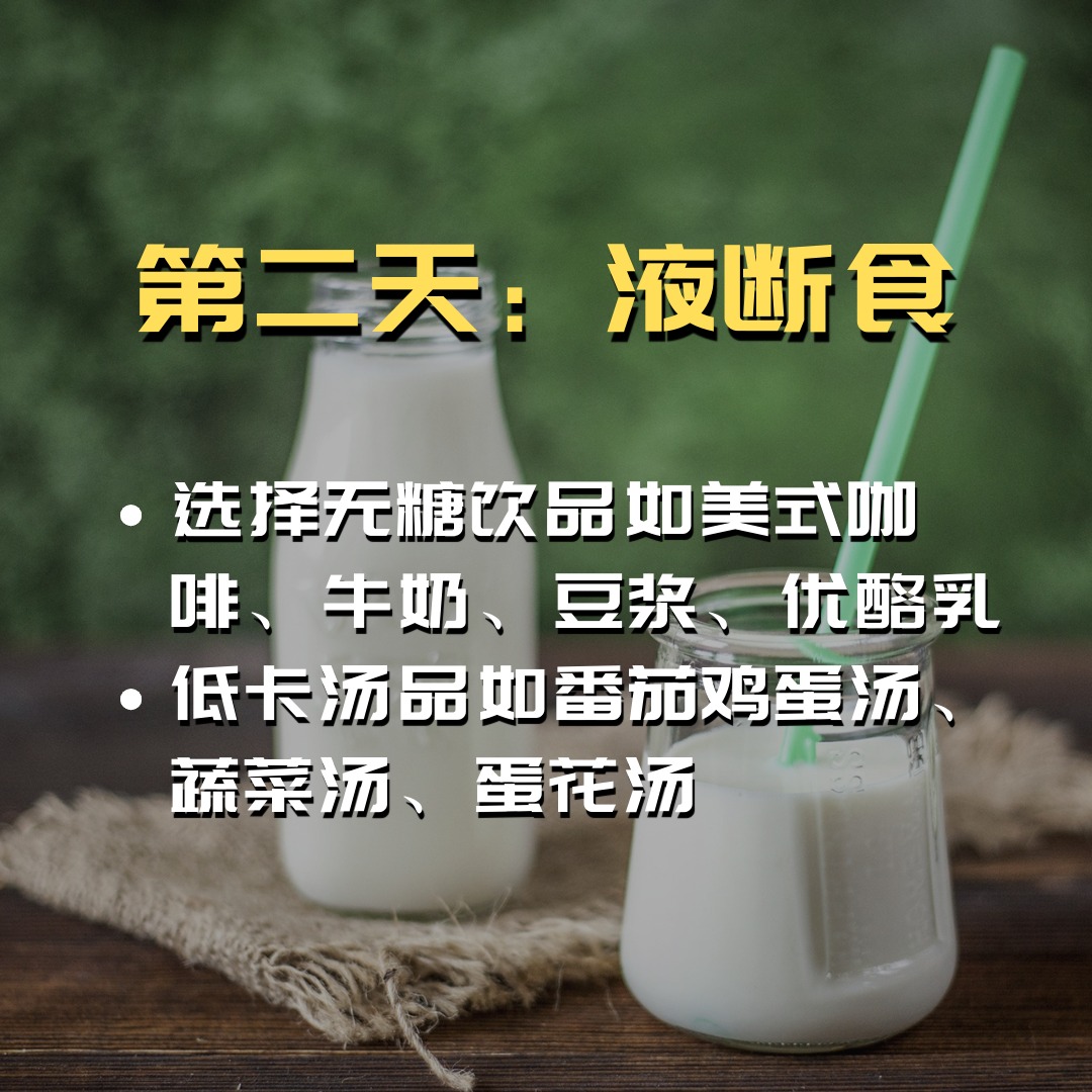 温馨提示:复食阶段切勿大吃大喝,前3天以少量食物加大量流食为主,逐渐恢复固体食物,保持清淡口味。