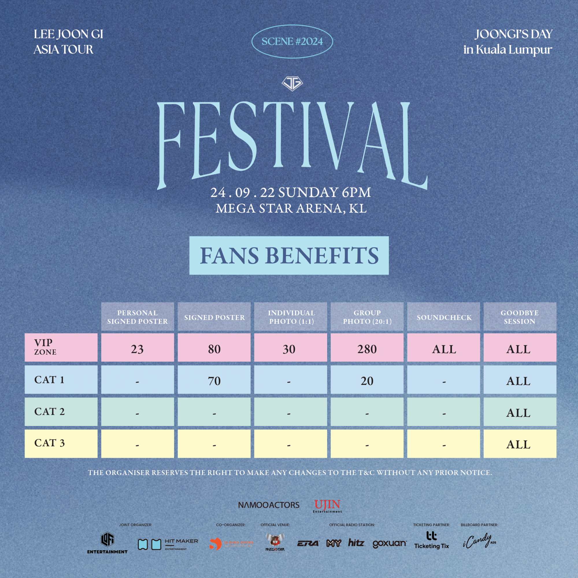2024 LEE JOON GI ASIA TOUR 《JOONGI’S DAY: FESTIVAL》 in Kuala Lumpur 将于 7月 26 日(星期五)中午12时通过官方票务平台 www.ticketingtix.com 全面发售。