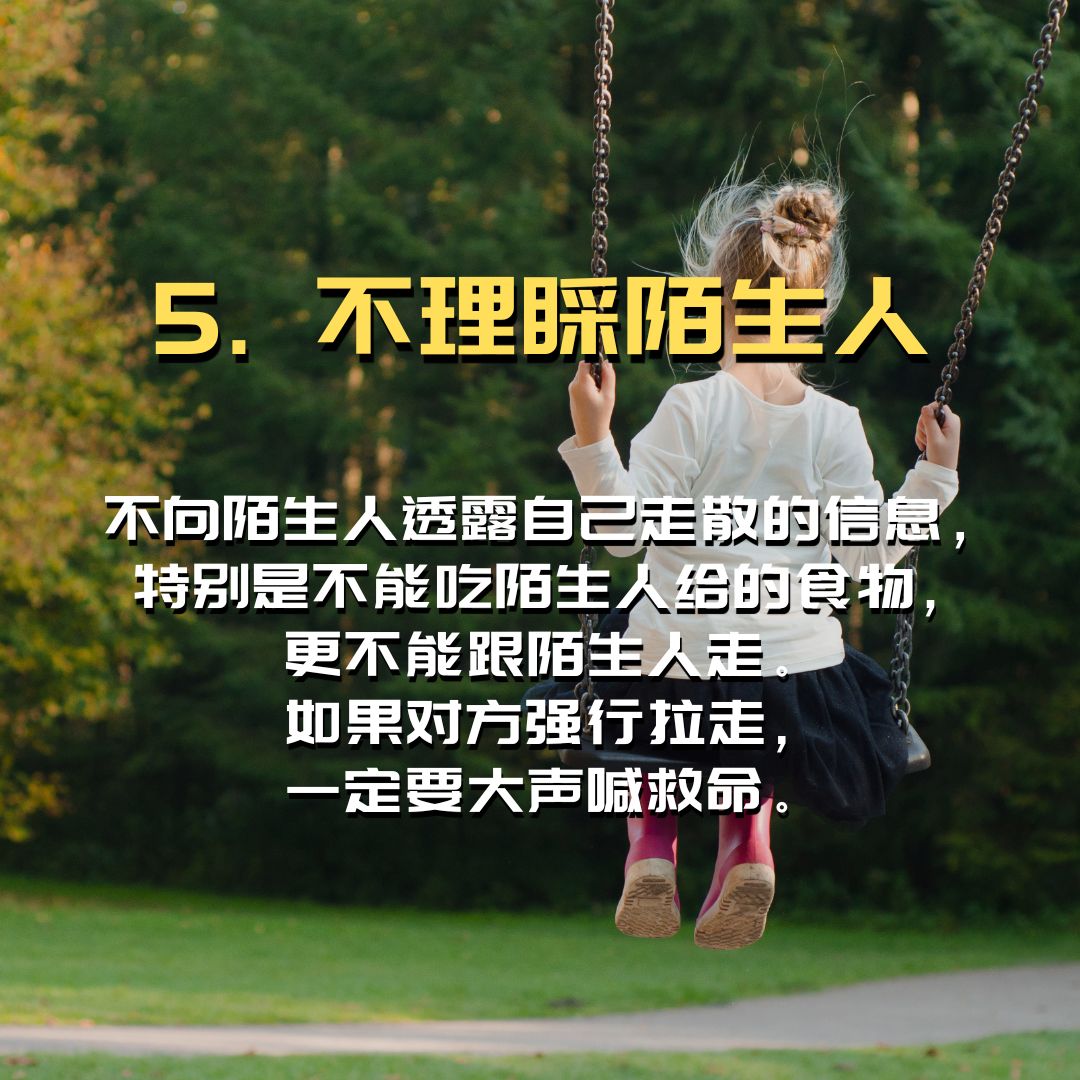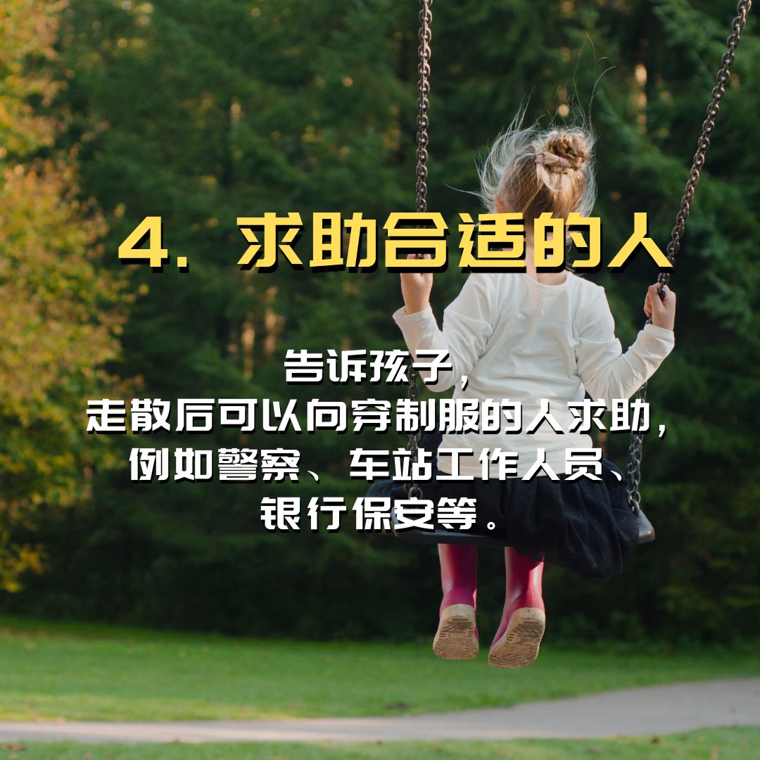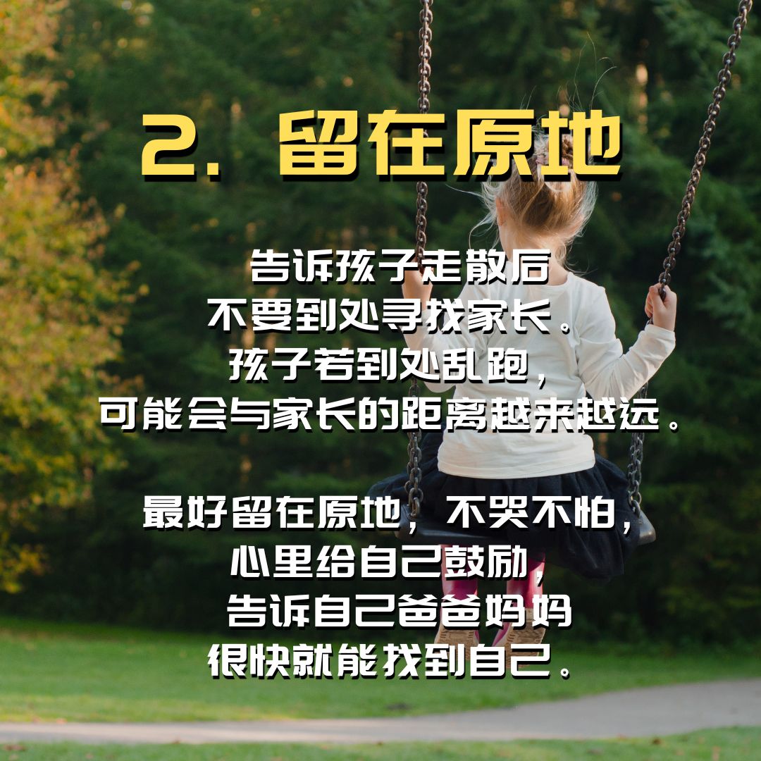 提前告知孩子走散时的应对方式,包括留在原地、牢记基本信息、不要跟陌生人走或制定一个家庭安全计划,包括在紧急情况下指定的集合地点。保持冷静报警