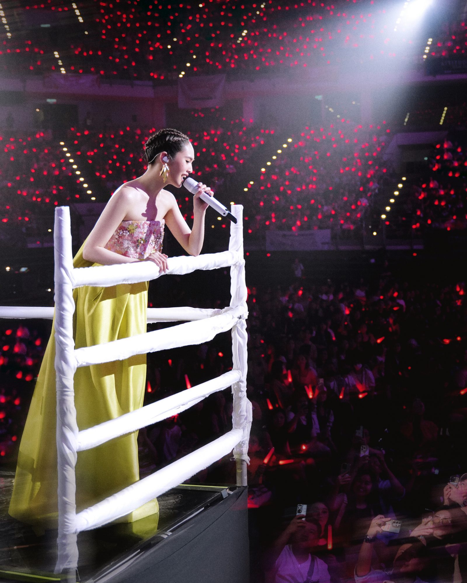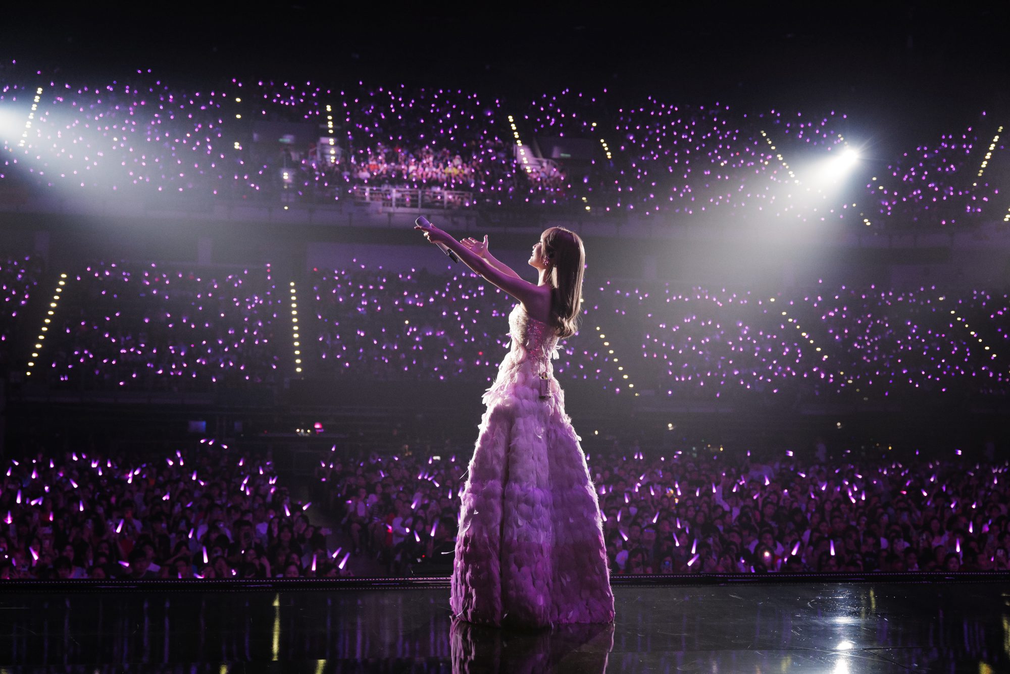 此外,她演唱会每套造型搭配都非常漂亮,还表示其中两套设计都是来自马来西亚设计师,甚至是自己超有诚意亲自私信联络对方,“这个设计师的服装很美,很有马来西亚风味,很开心再吉隆坡可以穿上!”眼尖的她还发现这次巡演多了很多男粉,自己也好奇宝宝为什么增这么多男粉,掀起台下阵阵尖叫。提到这次把巡演舞台运过来,她感动表示非常不容易,也非常幸福。