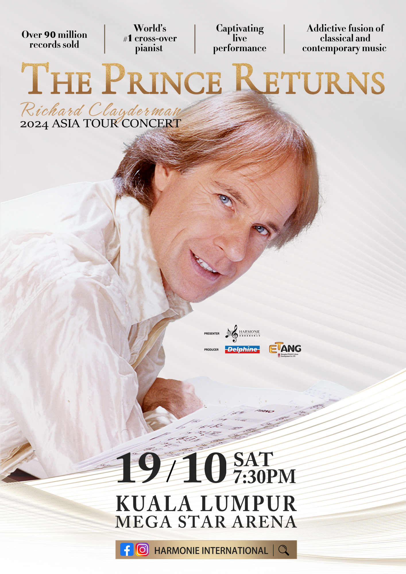 拥有超过200张专辑的浪漫王子理查德·克莱德曼(RICHARD CLAYDERMAN )2024亚洲巡演将于10月19日(星期六),晚上7点30分在吉隆坡Mega Star Arena举行。