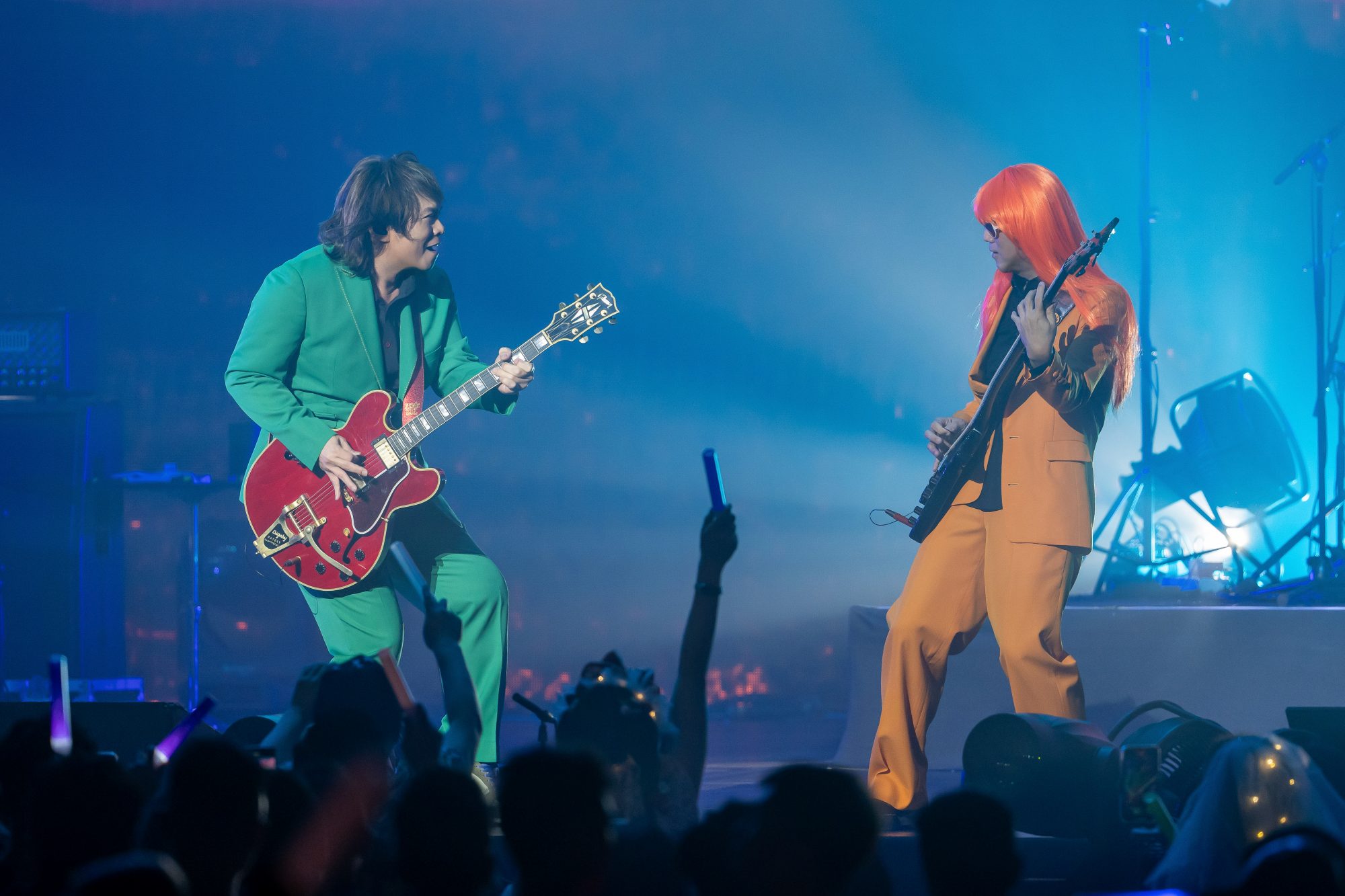 眼尖的他发现有新加坡、中国云南、北京、重庆、澳门等熟悉脸孔粉丝捧场,还好奇笑问:“为什么你们都可以买到第一排呢?”伍佰亦率领成员们一起玩人浪游戏,现场气氛一直吵嗨!