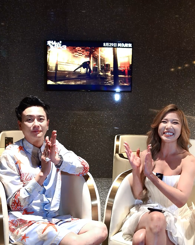 访谈结束时,Ms PuiYi 应现场工作人员的要求与男神拥抱合影。然而,在性感女神当前,黄宗泽仅是隔空投抱,随后仅轻搭对方肩膀,并全程双手抱拳,展现十足绅士风度。此举也被影迷调侃为黄宗泽多年保持“绯闻绝缘体”称号的原因,并非浪得虚名!