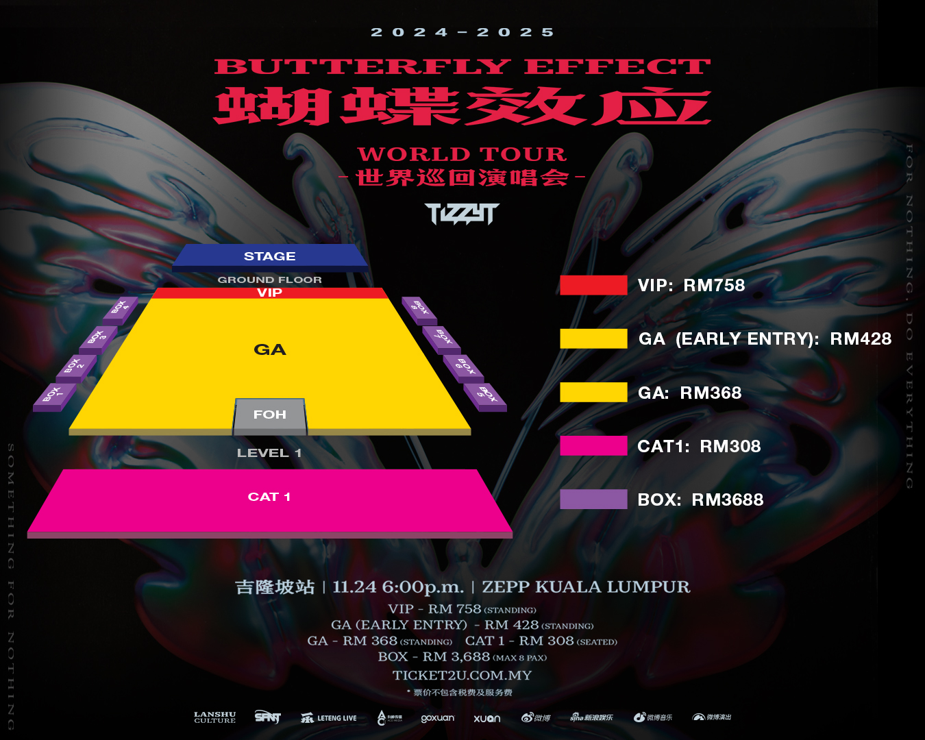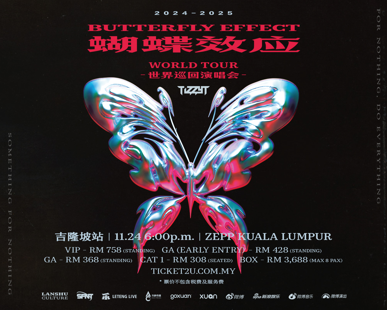 掀动翅膀,全新的旅程就要出发!TizzyT 《蝴蝶效应》世界巡回演唱会吉隆坡站将于11月24日(星期日),傍晚6点,在Zepp Kuala Lumpur引爆!