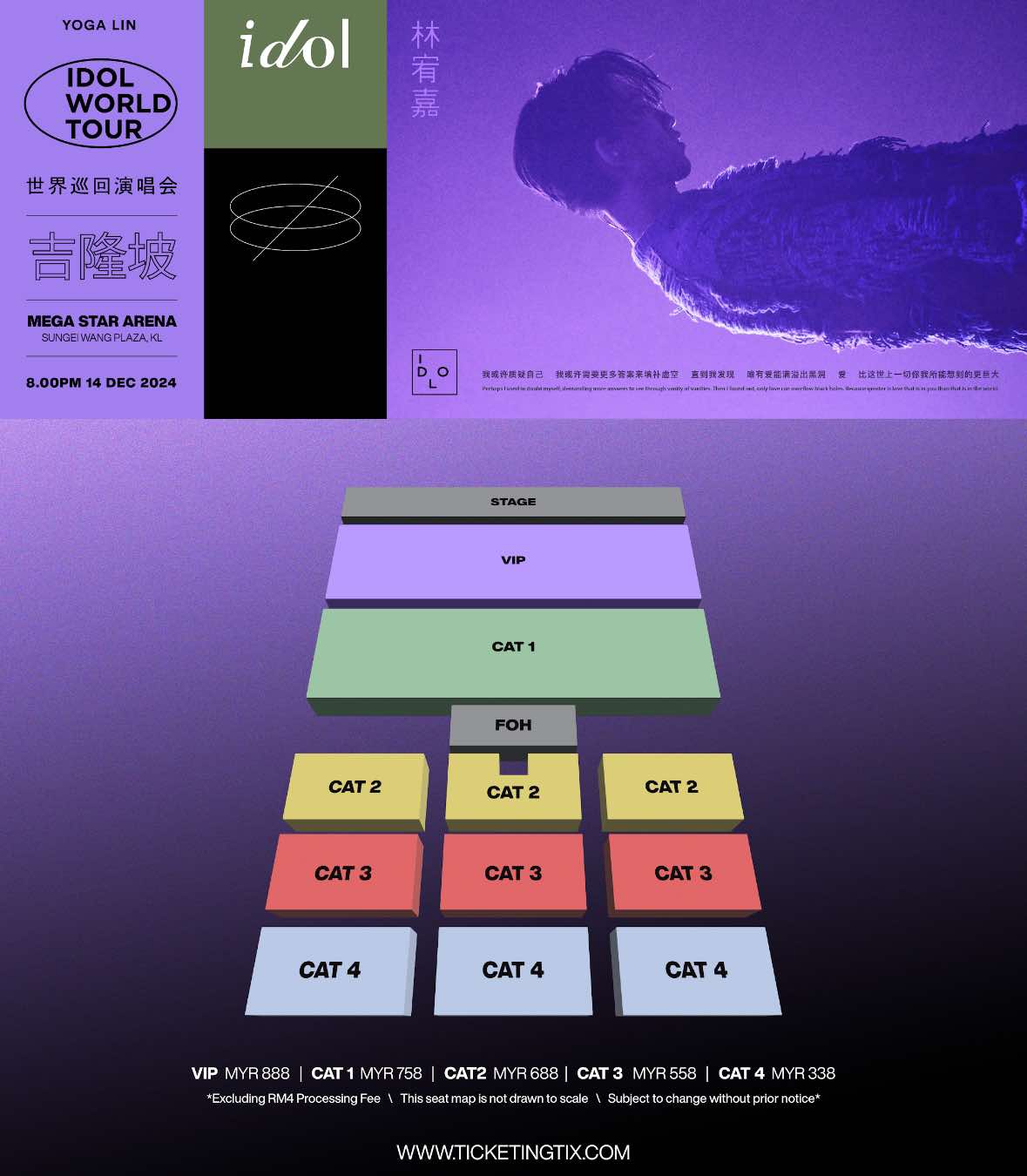VIP (RM 888) | CAT 1 (RM 758) | CAT 2 (RM 688) | CAT 3 (RM 558) | CAT 4 (RM 338)