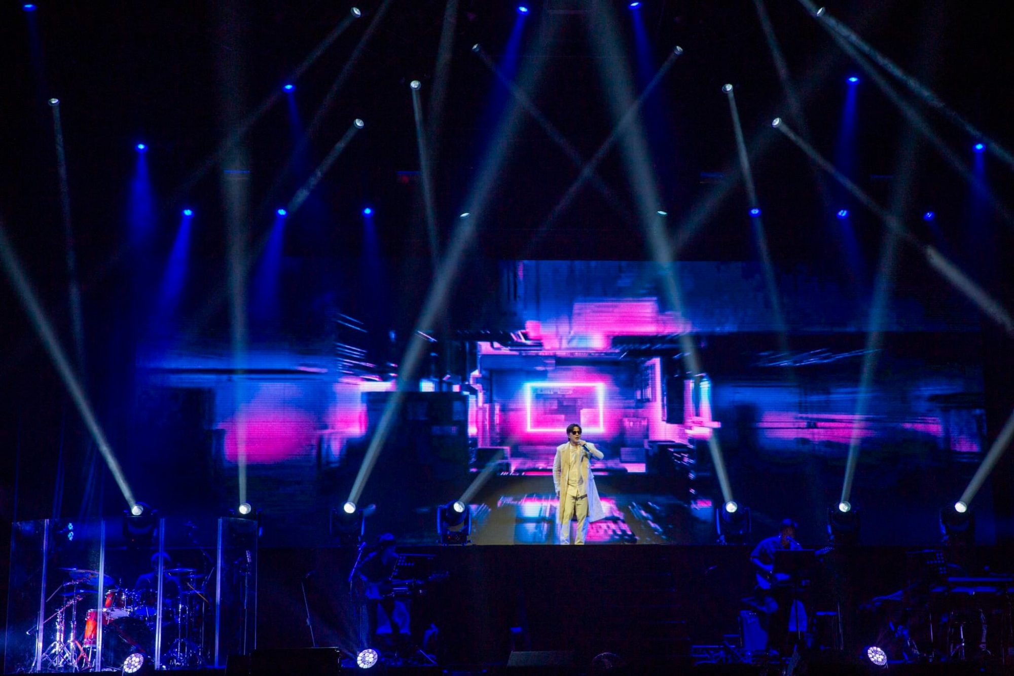 他惊喜走下舞台跟歌迷握手互动演唱《你是我的眼》,感谢大家一直以来的支持,他更用心选唱了许多大马歌手的作品《天后》、林健辉《内伤》以及他为Fish梁静茹创作的《慢冷》,期间多次掀起全场大合唱。