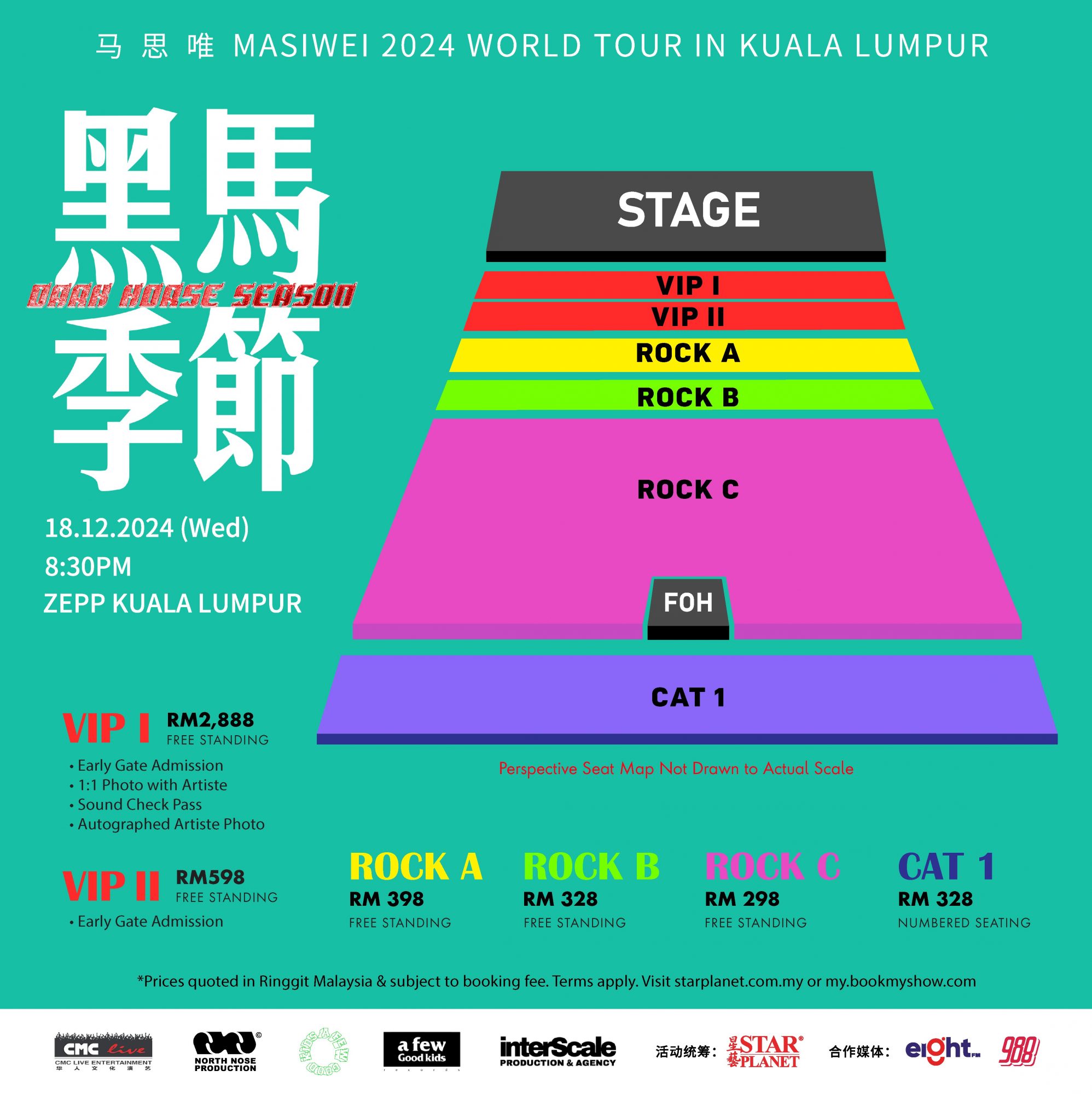 马思唯《黑马季节 Dark Horse Season》巡回演唱会吉隆坡站的门票,将于2024年11月13日,中午12点通过官方售票平台my.Bookmyshow.com全面公开发售。