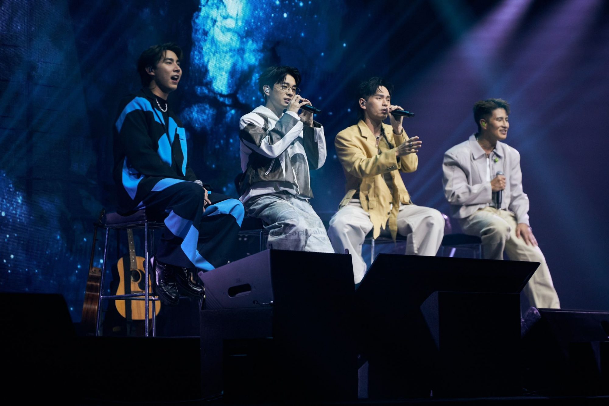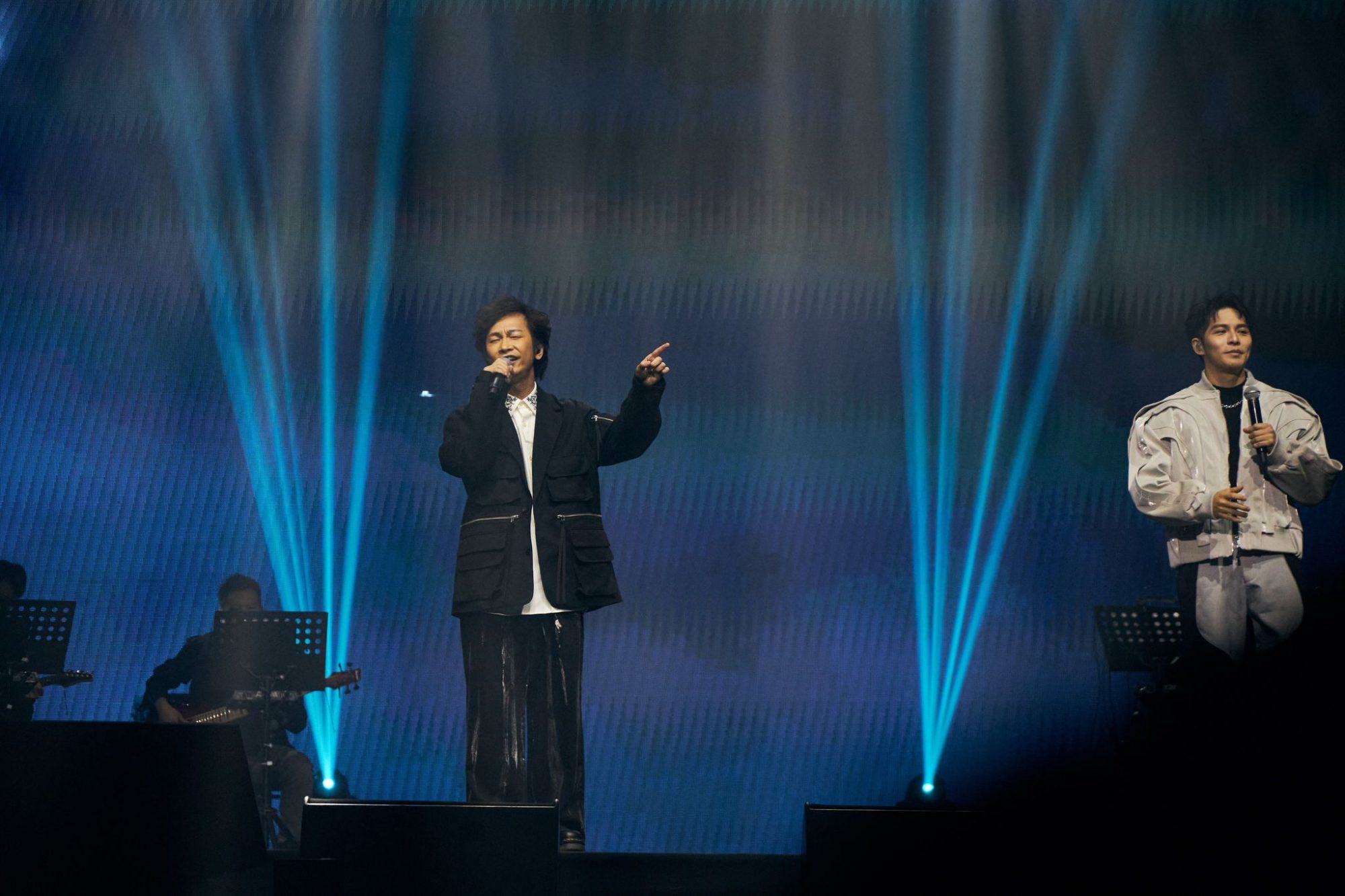 这场长达三小时的音乐会充满惊喜,张智成久违重返舞台,与Danny许佳麟深情合唱《末日之恋》,紧接着献唱经典之作《凌晨三点钟》,凭借神级转音和精湛唱功征服全场观众,瞬间点燃现场气氛!