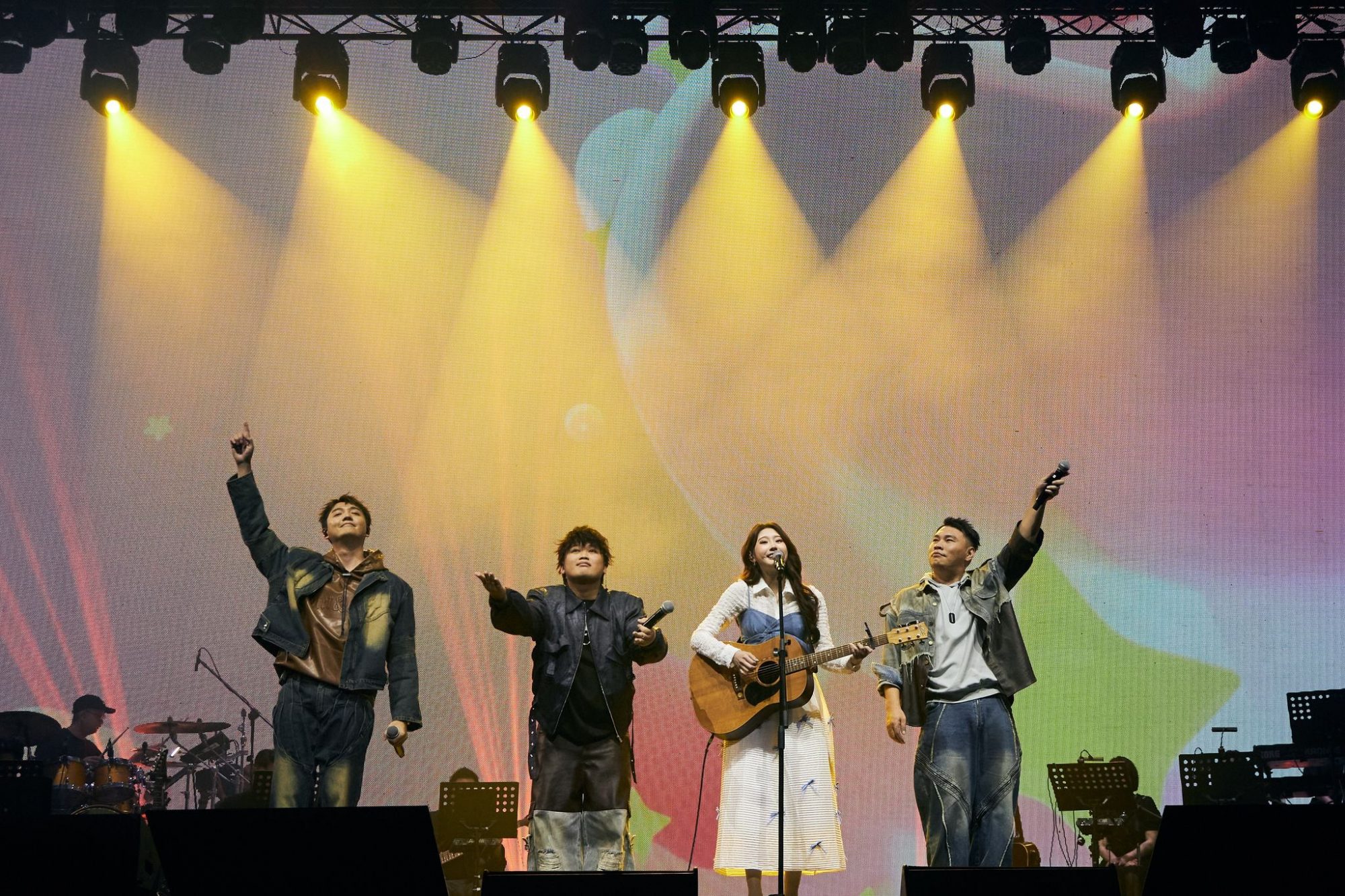 此外,黄宣作为压轴嘉宾登场,与“电音公主”Priscilla Abby蔡恩雨合唱《怪天气》,默契十足的表演让全场气氛沸腾,蔡恩雨更是激动直呼:“好爽!”随后,黄宣继续带来《独上C楼》和《Ghost Swing》两首歌,他充满个性的舞台表现引发全场欢呼不断,再一次将音乐会气氛推向高潮。