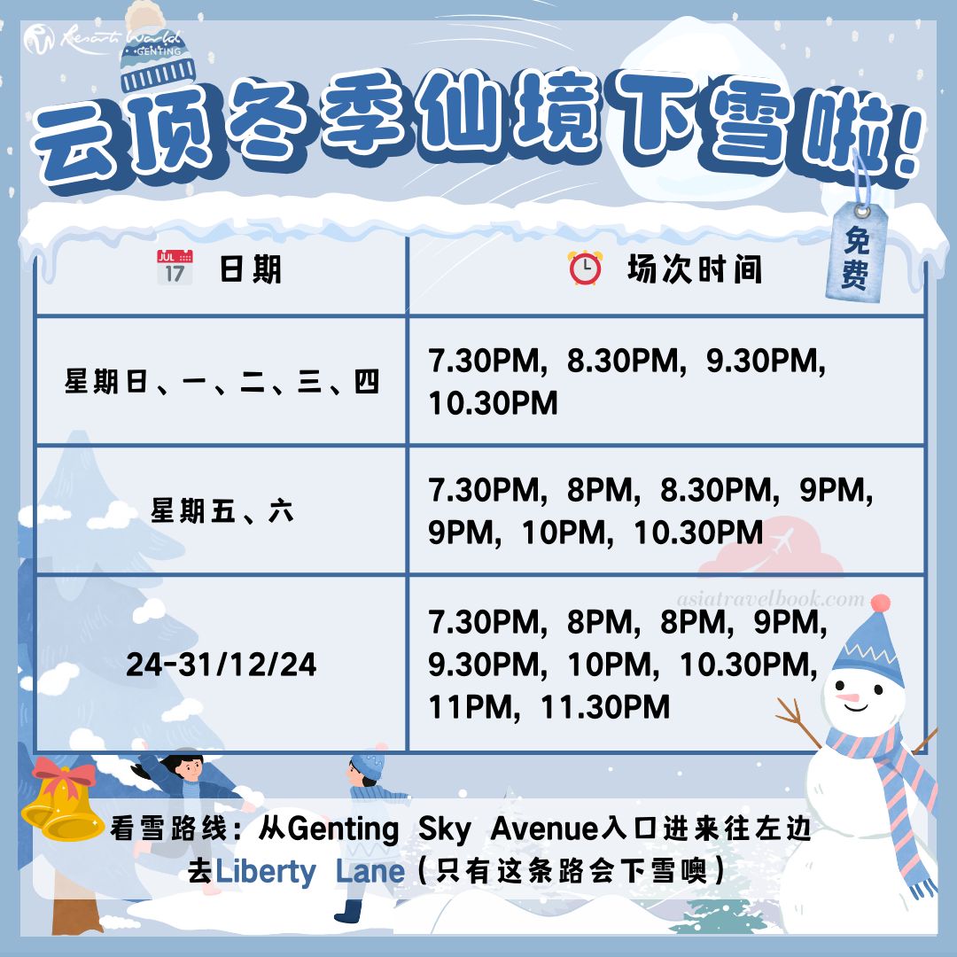 下雪时间:每晚 8:00pm (约 10-15 分钟)
