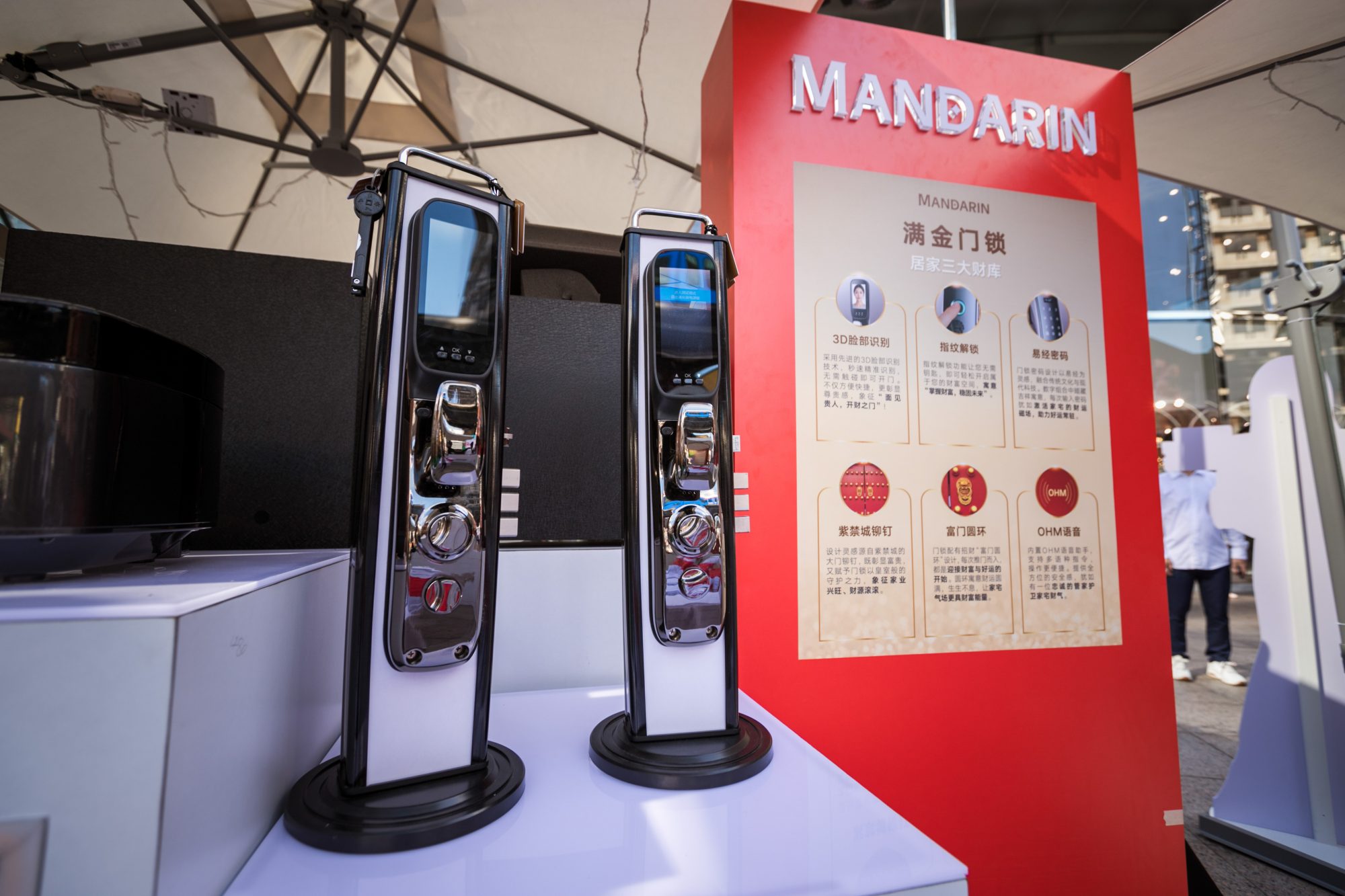 👉“满金门锁”将科技与玄学结合,设计灵感源自紫禁城的大门铆钉,象征皇室般的守护之力,象征国家兴旺、财源滚滚,富门圆环的设计是迎接财富与好运的开始,门锁更配备 3D 脸部识别、指纹解锁、易经密码及 OHM 语音功能,让你的“开财之门”激活家宅的财运磁场,助力好运常驻。