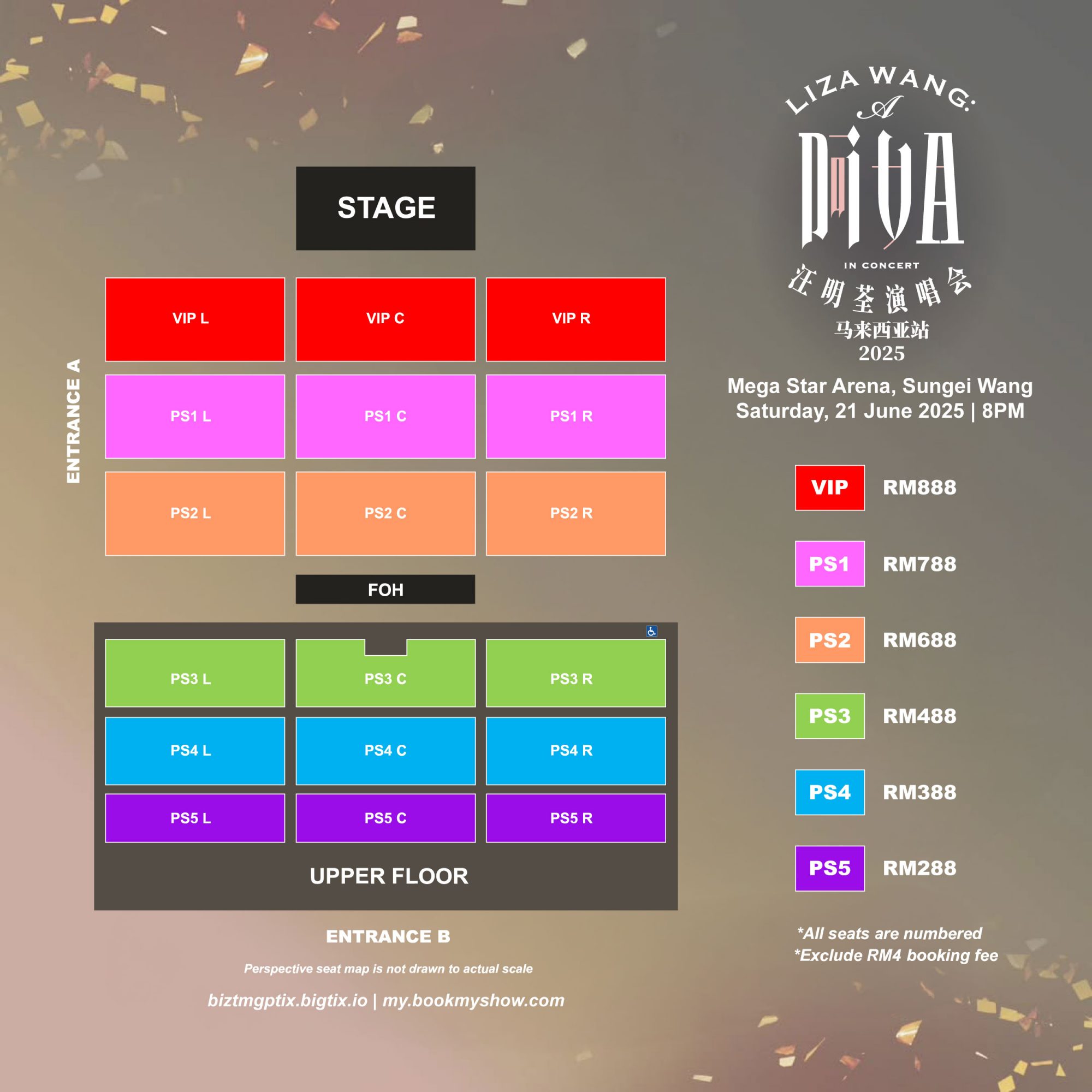 《阿姐•汪明荃演唱会》马来西亚站的门票将于1月23日, 中午12点正式开售,门票分为888令吉(VIP)、788令吉(PS1)、688令吉(PS2)、488令吉( PS3)、388令吉(PS4)及288令吉(PS5)。