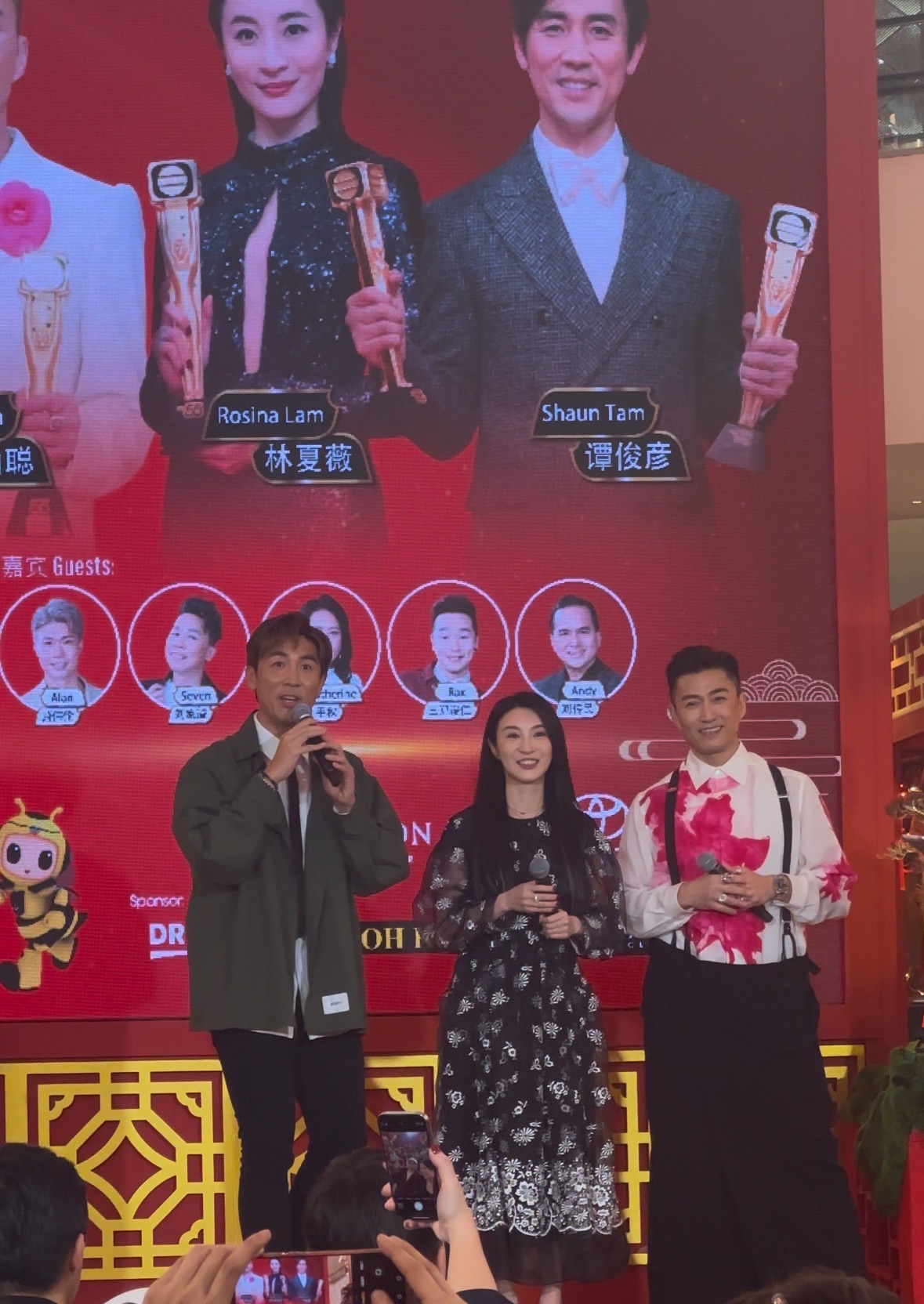 TVB视帝视后陈山聪、林夏薇、谭俊彦在新年前夕来马跟粉丝见面玩游戏,主办单位播放《黑色月光》主题曲迎接三人登场,瞬间让现场有霸气氛围感!接着他们就开心跟全场打招呼喊“新年快乐!恭喜发财!身体健康!”