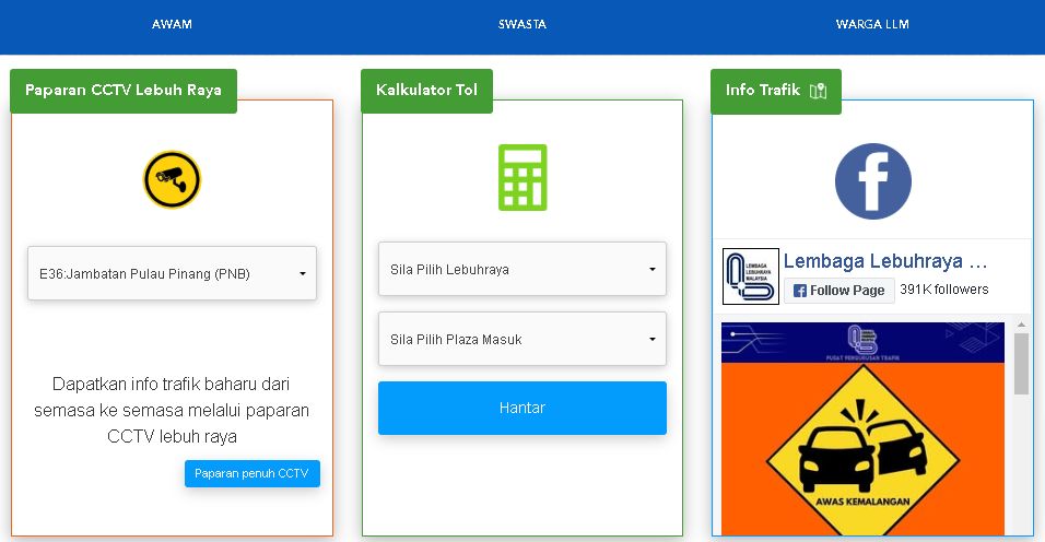 另外,你还可以浏览马来西亚大道局的官方 X 账号:https://x.com/llmtrafik,了解最新的交通资讯,包括事故路段及塞车警报等。此外,官网也提供Kalkulator Tol,方便查询过路费及其他相关信息。