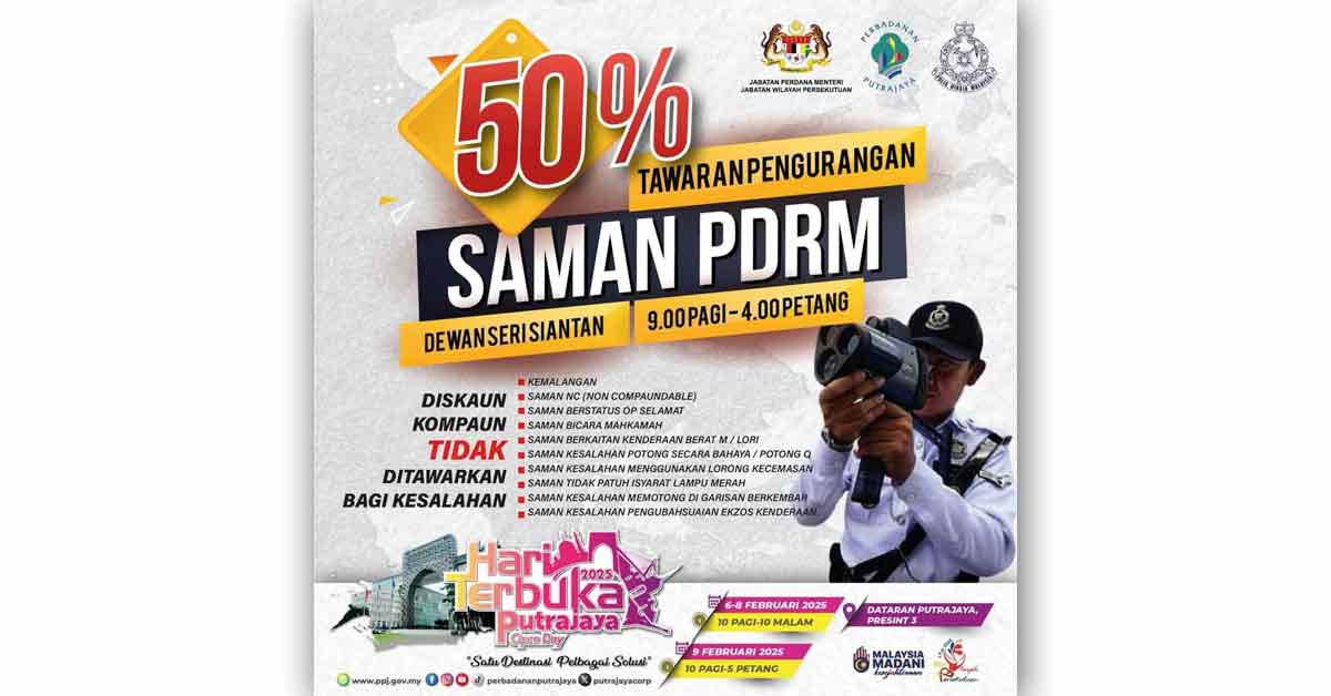 配合2025年布城开放日活动,警方推出交通罚单50%折扣优惠,吸引民众前来缴清罚单,减轻经济负担。此优惠活动为期4天,从昨日开始至本月9日(周日)结束。