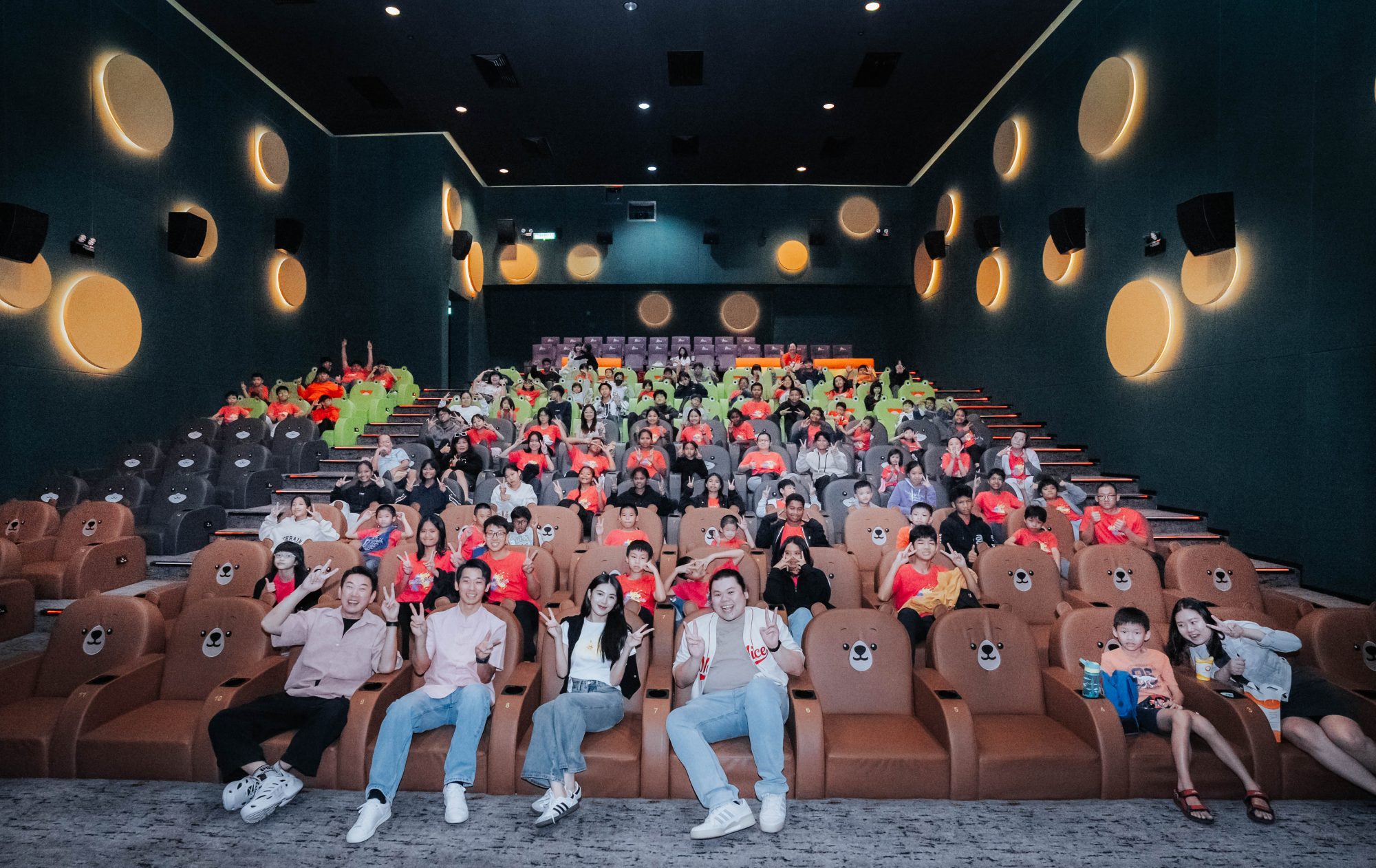 姜皓文也兑现之前的承诺,周五(7日)在戏院包场招待日辉之家、心愿儿童福利院逾百名小朋友,在戏院一起欣赏《哈哈哈新年喜戏》,带给小朋友一个欢乐的下午。姜皓文更邀请大马羽球混双名将陈炳顺、主持人Royce陈志康齐齐入场观影,此举亦令他们有感意义非凡。