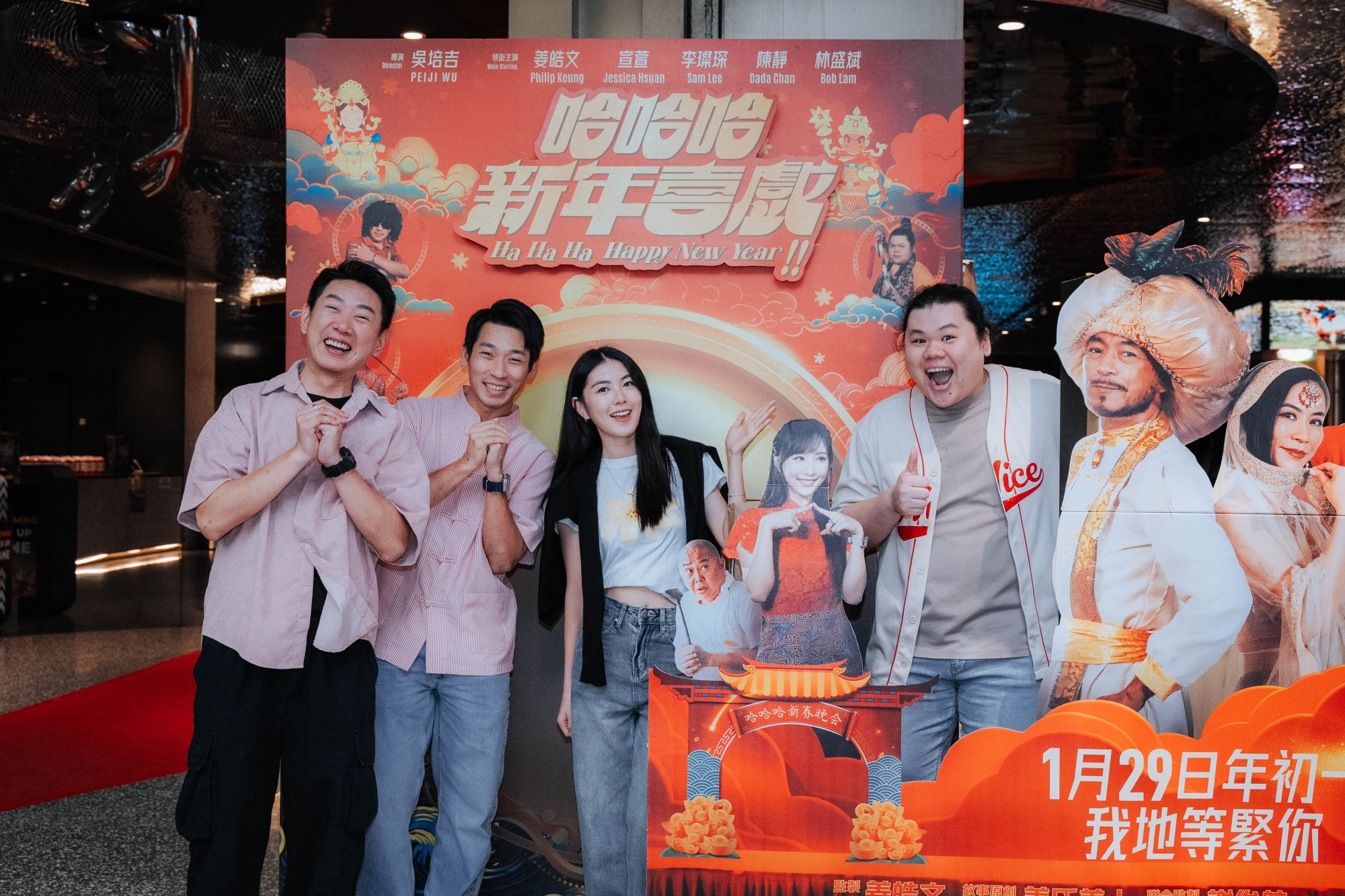 由姜皓文监制兼主演、太太殷宁创作故事的贺岁片《哈哈哈新年喜戏》,电影自大年初一先攻大马贺岁档,纵使强敌如林,但姜皓文仍然迎难而上,没有回香港过年,与太太留在大马,从年初一开始四处奔走,到各个戏院向观众谢票,有一场见面会他更冒着大雨出席,期间还不断走去观众区与现场粉丝互动,豁出去为电影造势,不少人见状都直赞姜皓文诚意满分!