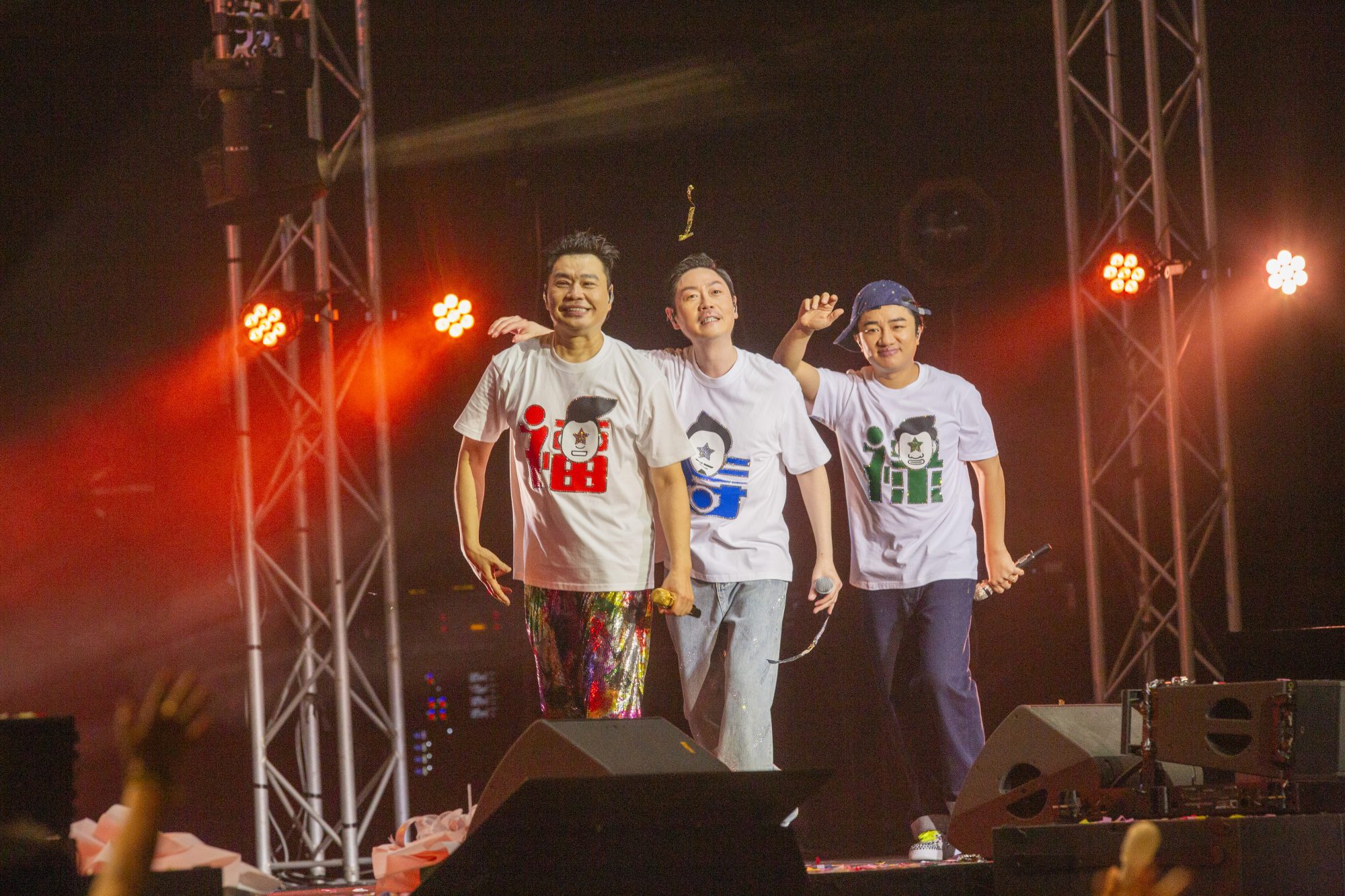 接着三人就各自开始串场,打扮成许多天王巨星,用搞笑又认真的演唱方式逗笑大家!其中就扮演了曾比特、王杰、郭富城、郑伊健、许冠杰、PSY、谭咏麟等等,让全场氛围推向最高潮!