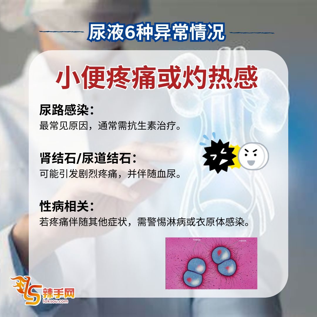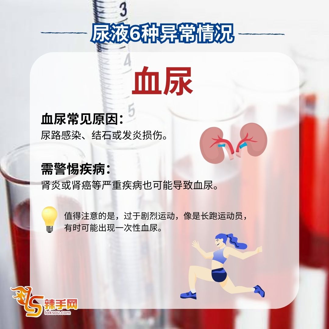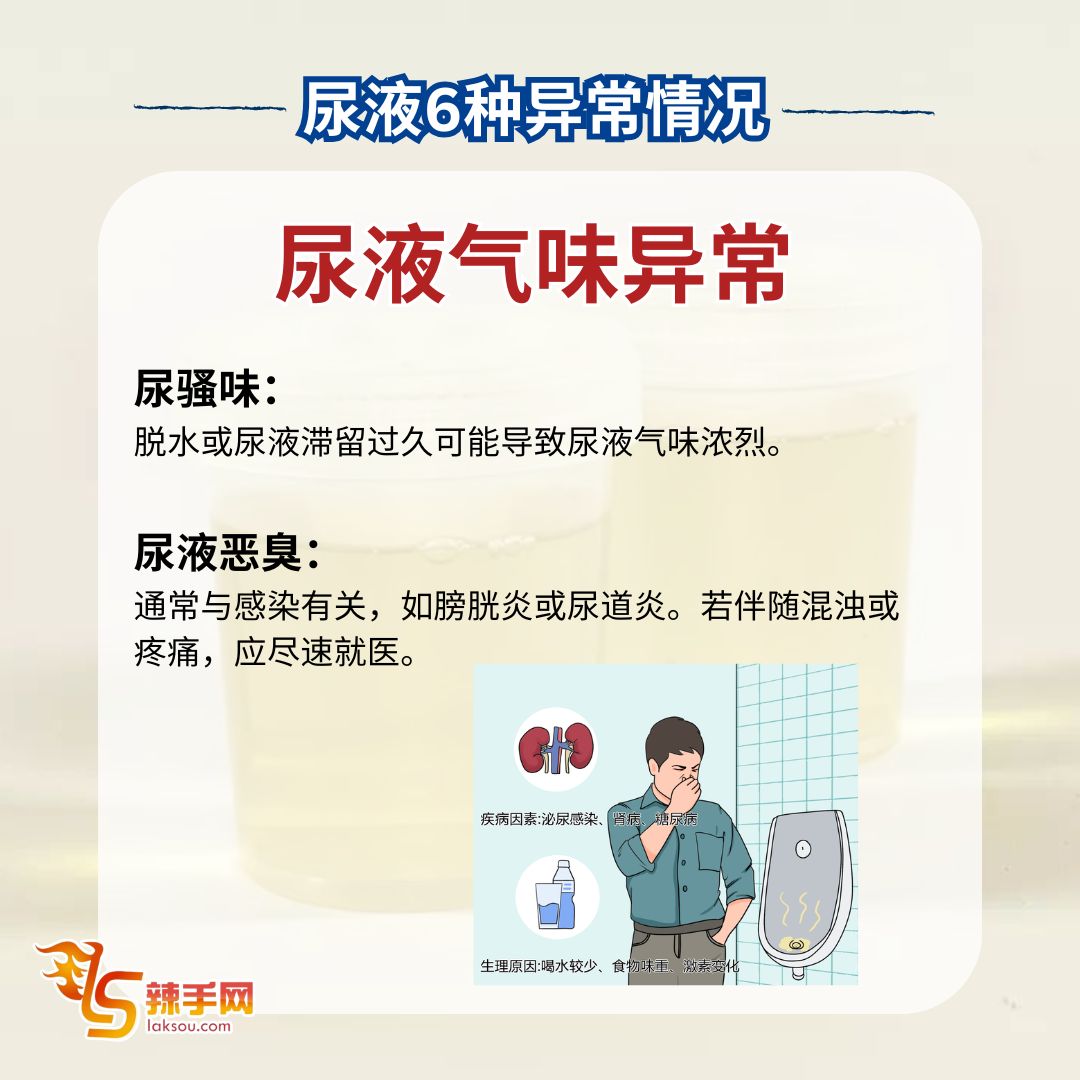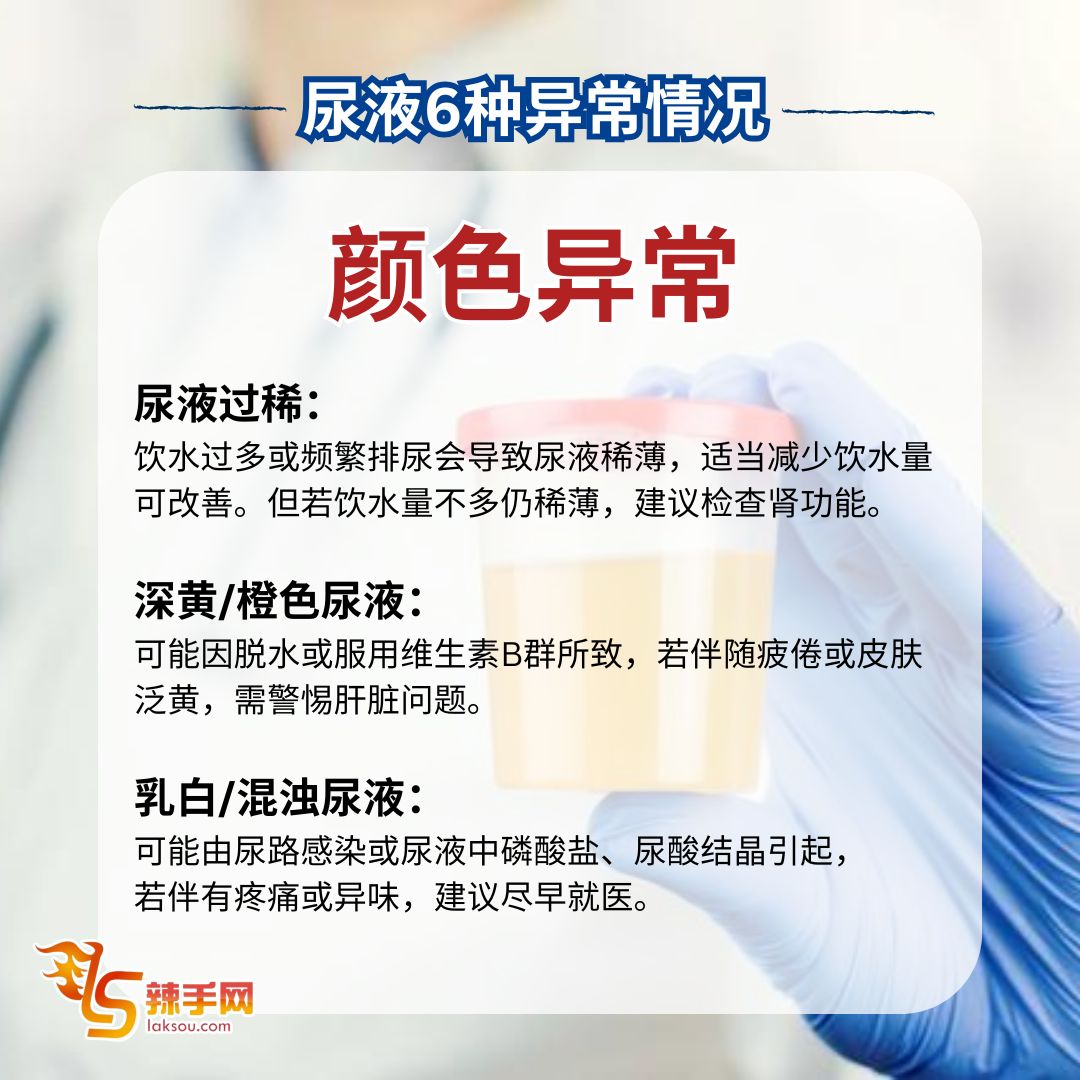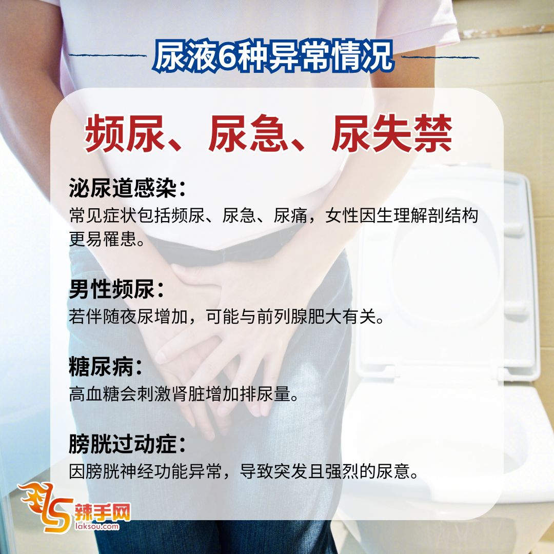 尿液异常恐是健康警讯!医生提醒别忽视这6大症状 8 Mar , 2025 | 吃喝玩乐 若发现小便异常,可能是健康亮红灯的征兆,应尽早就医检查,以免延误治疗! 据《东方日报》报导,台湾泌尿科医生高铭鸿指出,尿液出现以下6种异常情况,可能与肝脏、肾脏或泌尿系统疾病相关,提醒大众提高警觉。 医生提醒:若出现上述异常,切勿轻忽,应尽快就医检查,避免病情恶化! 分享