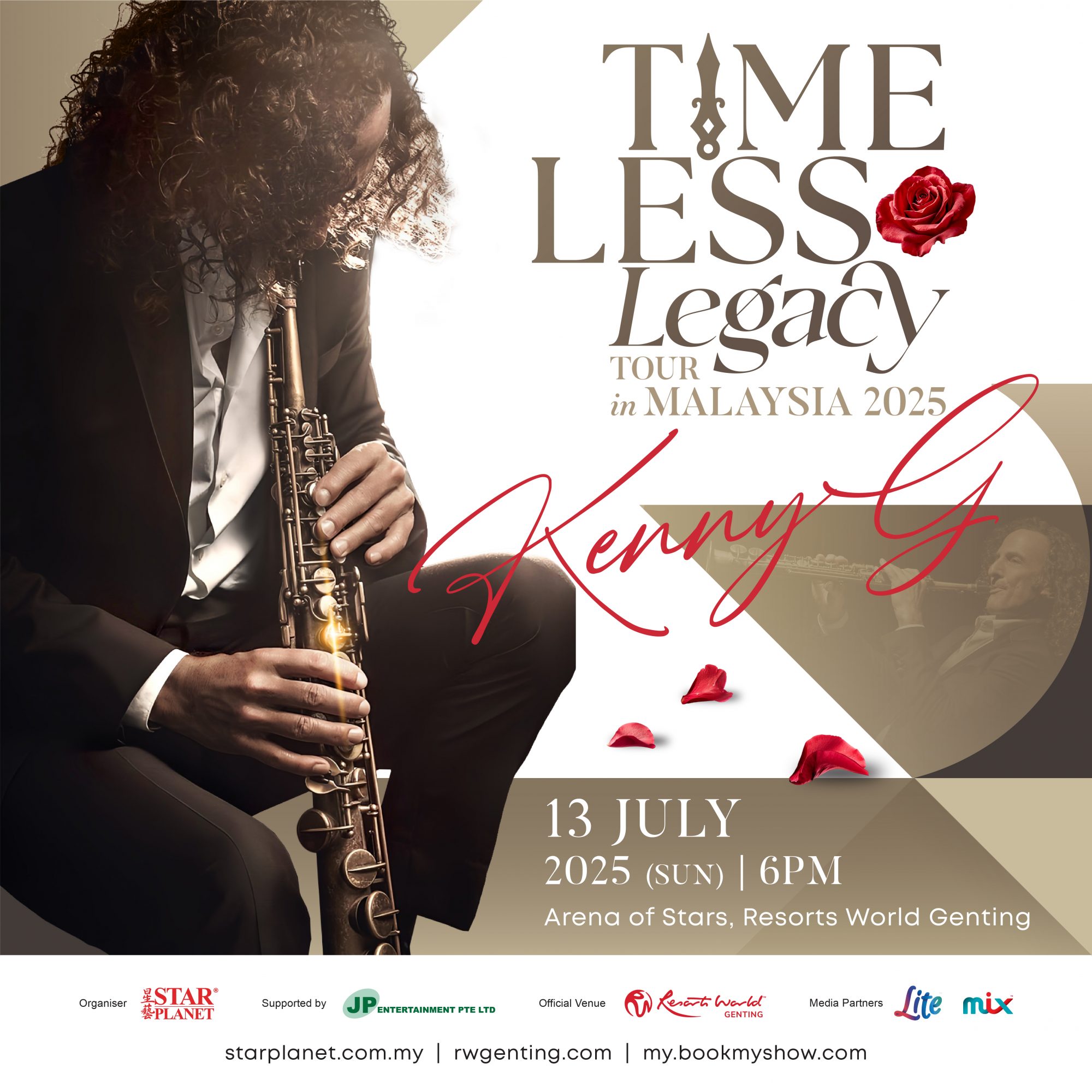 Kenny G《Timeless Legacy》巡回演奏会 – 马来西亚站门票将于4月4日中午12时正式公开发售。 欲了解更多详情,请浏览 starplanet.com.my 、rwgenting.com 或 my.bookmyshow.com。