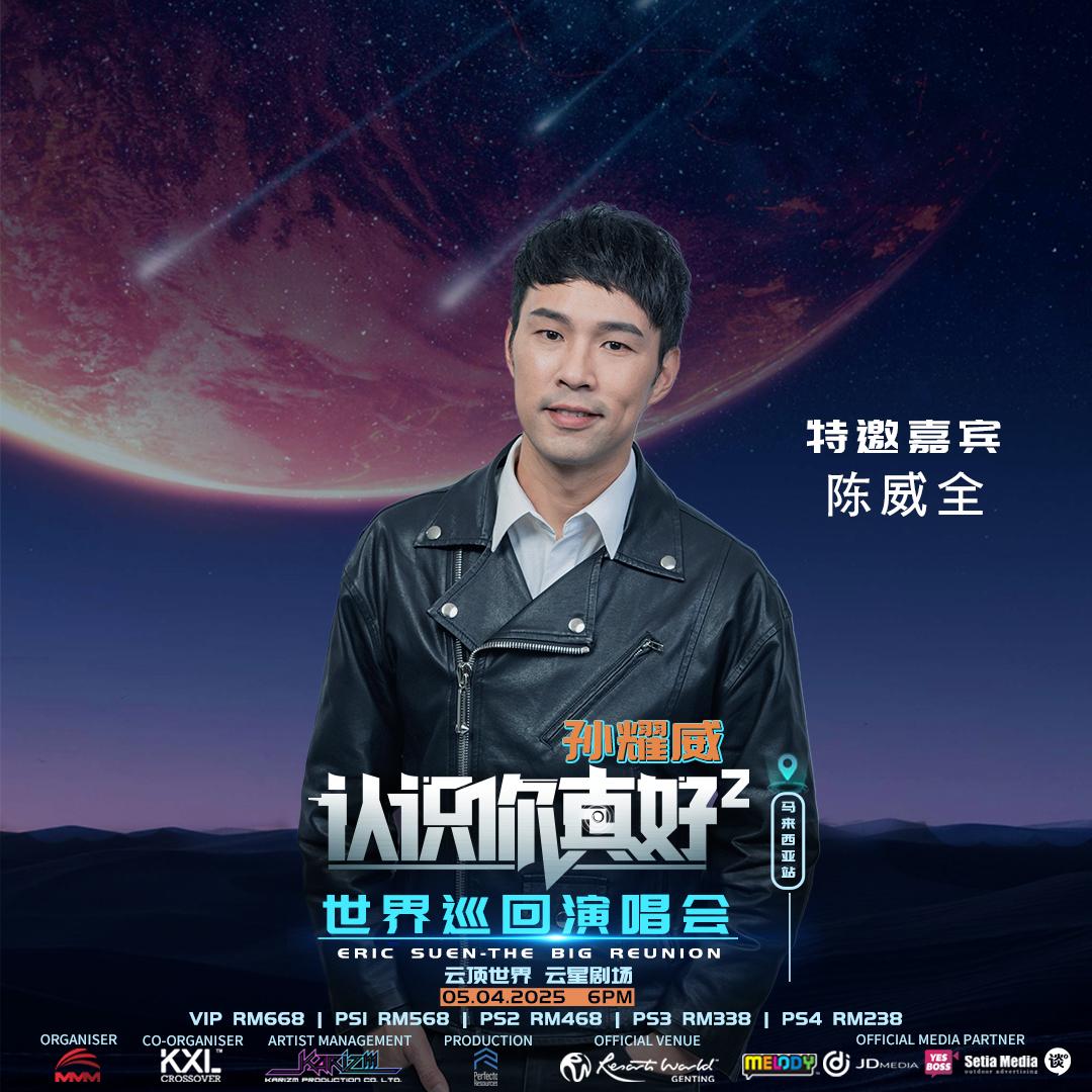 孙耀威《认识你真好2》世界巡回演唱会-马来西亚站,即将在云顶世界云星剧场举行,今天正式宣布三位重量级嘉宾加盟,他们包括大马杰出音乐才子陈威全、超人气唱作才女 Priscilla Abby 蔡恩雨以及同为歌手出身的“孙太太”陈美诗共同助阵,为观众打造一场难忘的视听飨宴。