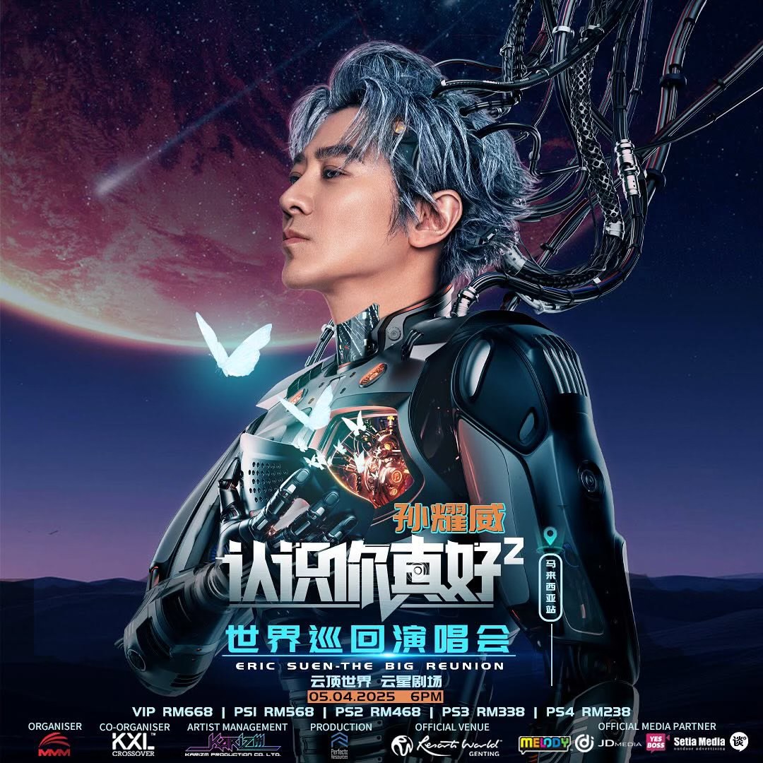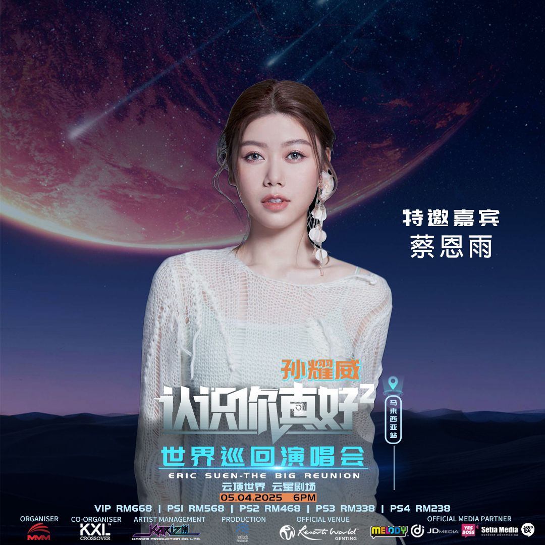 孙耀威《认识你真好2》世界巡回演唱会-马来西亚站,将于 4 月 5 日(星期六)傍晚 6 时在云顶世界云星剧场隆重举行。票价分为 668 令吉(VIP)、568 令吉(PS1)、468 令吉(PS2)、338 令吉(PS3)及 238 令吉(PS4),所有票价不包含 4 令吉手续费, 购票链接: www.rwgenting.com