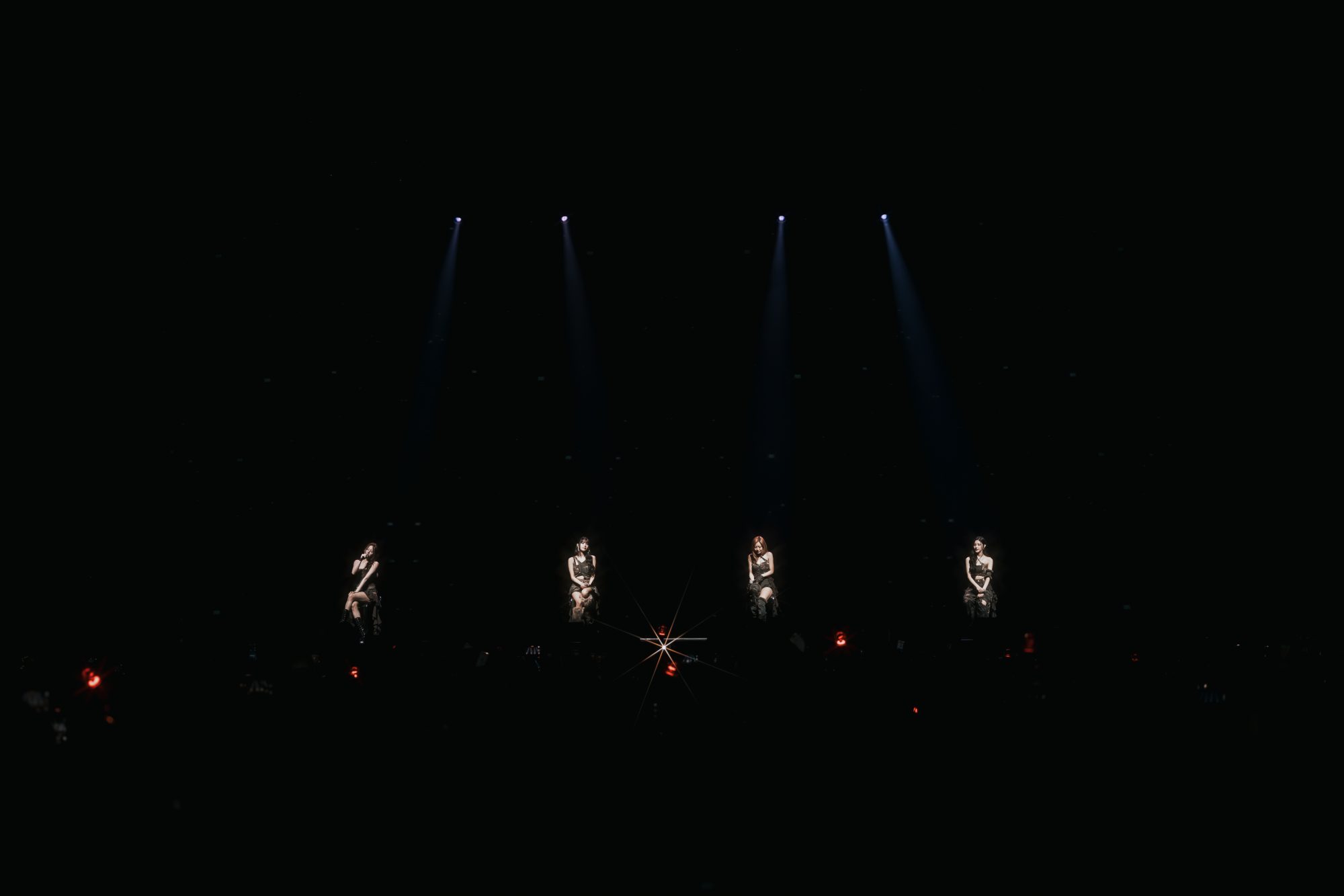 这场演唱会的亮点之一,便是四位成员各自呈现的SOLO舞台。舞台前特别设置了倒数环节,配合 Belle 的 Solo《Countdown》,她身穿性感服装以迷人舞步与高音掀起全场热浪,为后续表演打响精彩头炮。随后登场的 Julie 带来《Kitty Cat》,以热辣风格展现魅力十足的舞台表现,充分展现她强大的自信和舞台掌控力。