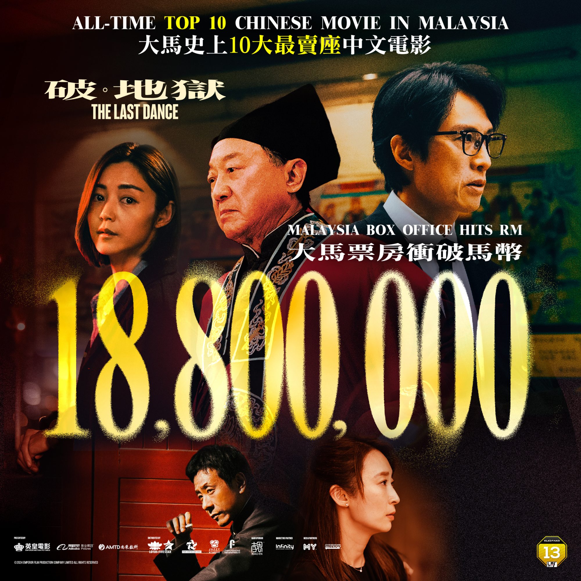 《破·地狱》马来西亚累计票房正式突破1880万令吉,不仅跃升为近6年来大马最高票房的香港电影,更强势跻身大马影史十大中文电影票房排行榜,成绩斐然!与此同时,港澳累计票房亦已冲破1亿6600万港币,一举登顶香港影史中文电影票房冠军宝座,持续缔造票房佳话!