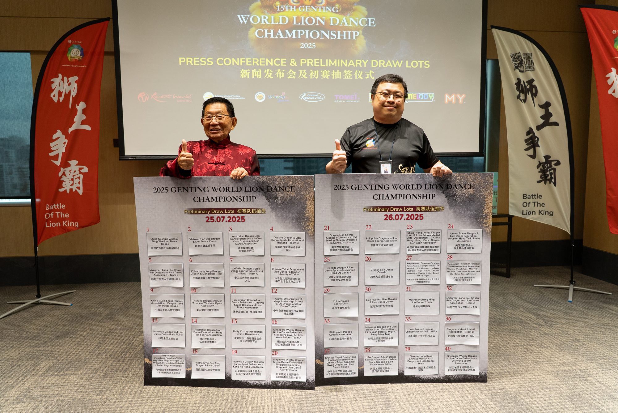 在赛事正式展开前,大会日前举办了新闻发布会及抽签仪式,为即将来临的赛事营造声势。出席嘉宾包括云顶世界营销与公关部执行副总裁李德龙、马来西亚雪隆龙狮联合会总会主席梁溧棠、宏达视听摄影有限公司业务发展总监拿督赖祯信以及营销高级经理巫振成。
