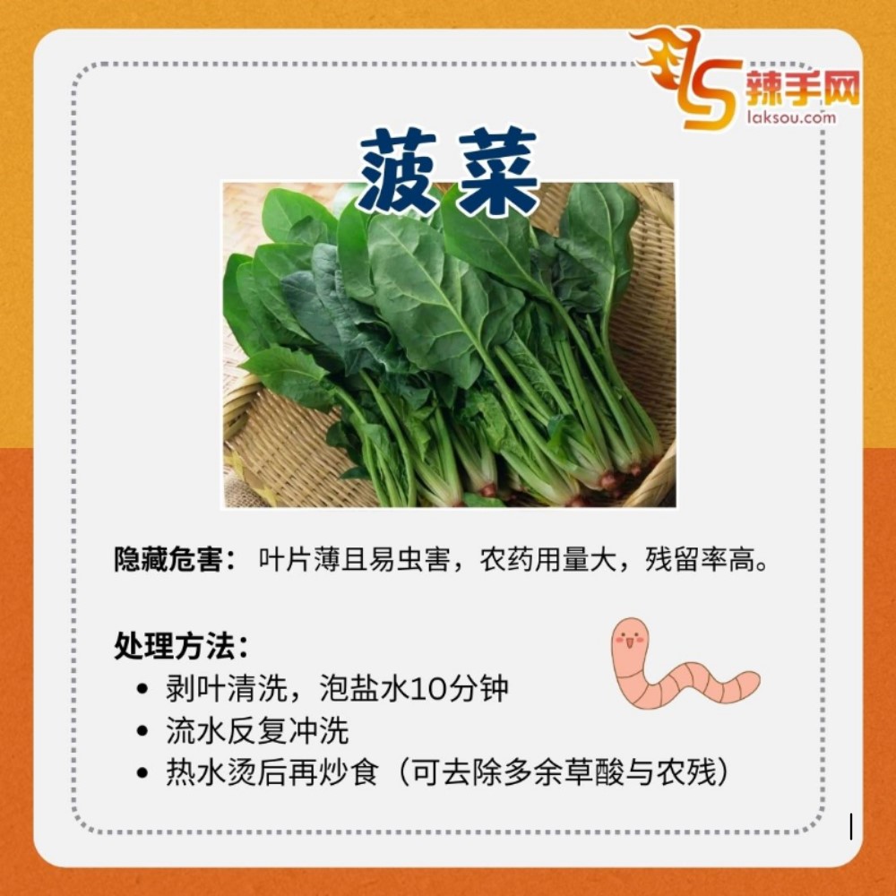 超市高风险蔬菜TOP 9 别让农药吃进肚! 22 Apr , 2025 | 吃喝玩乐 这些蔬菜并非“天然有毒”,但在种植过程中常被大量使用农药或保鲜剂,若处理不当,可能对健康造成隐患。 快看!这9种高风险蔬菜该怎么处理才最安心?图解一步看懂!别让农残悄悄上桌,掌握正确清洗方法,全家吃得更安心、健康! 分享