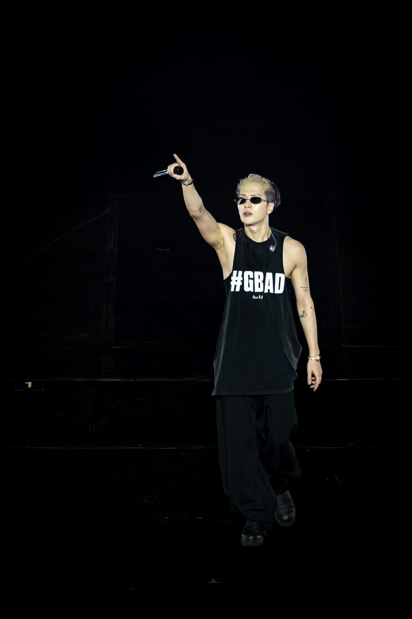 王嘉尔在GOT7曼谷拉加曼加拉国家体育场的舞台上,惊喜献唱新专辑《MAGIC MAN 2》的全新单曲《GBAD》,作为整张专辑的首次公开演出,展现满满诚意,瞬间点燃全场热情。