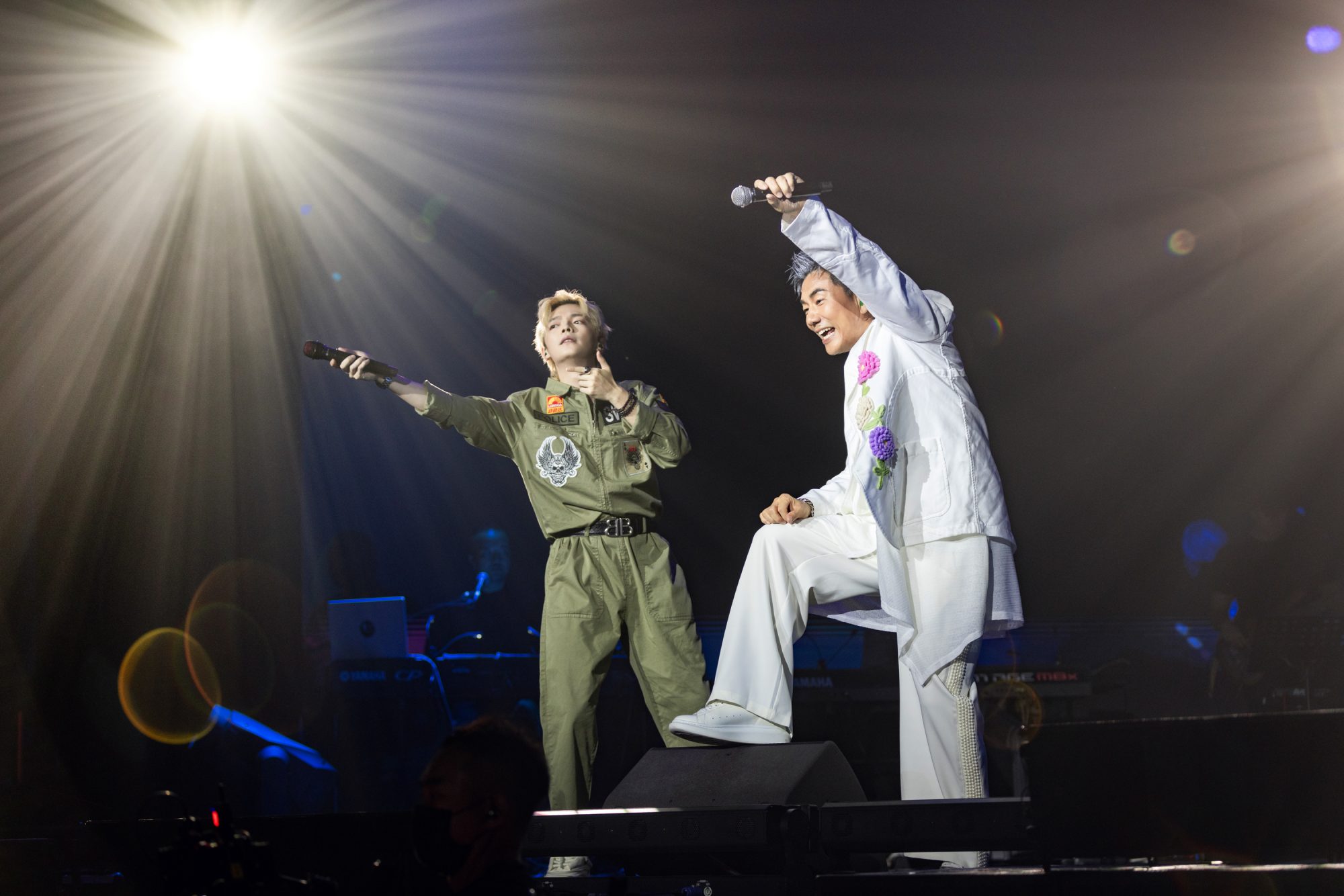 在演唱会尾声时,他对歌迷喊说:“让我感受一下伍佰老师的感觉,伍佰老师太让人羡慕了,他的前奏一下去,他都还没开口,底下的全唱光了,他还手插着口袋指挥,我可以试下伍佰老师的感觉吗?”歌迷超给力大合唱《心太软》,让他开心满足,后半段他也和歌迷全场合唱。