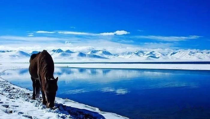 纳木措是世界上海拔最高的咸水湖,更是朝圣者心中的圣湖。这里的水是大片大片的蓝,蓝得清澈见底,蓝得令人心醉。
