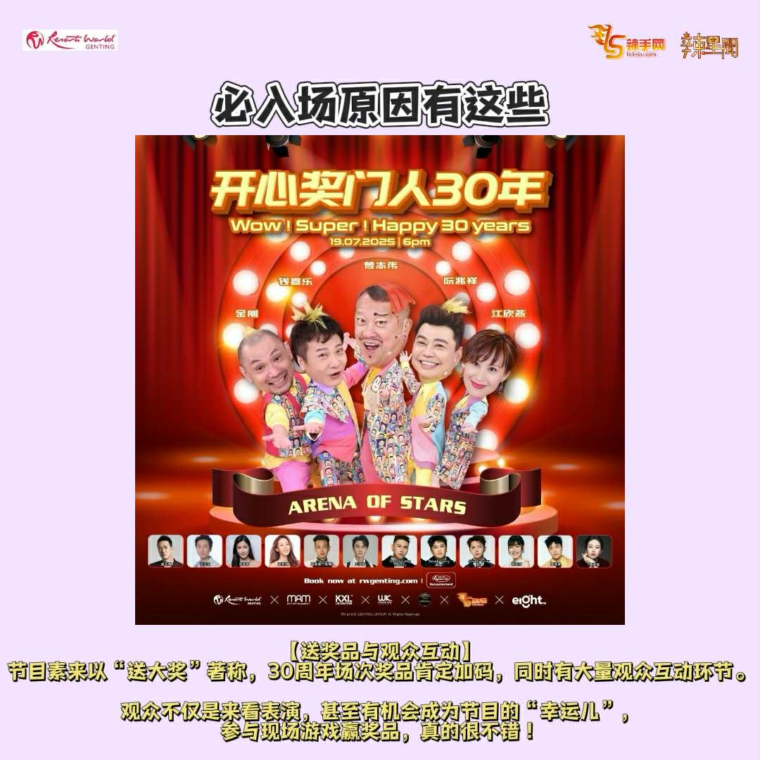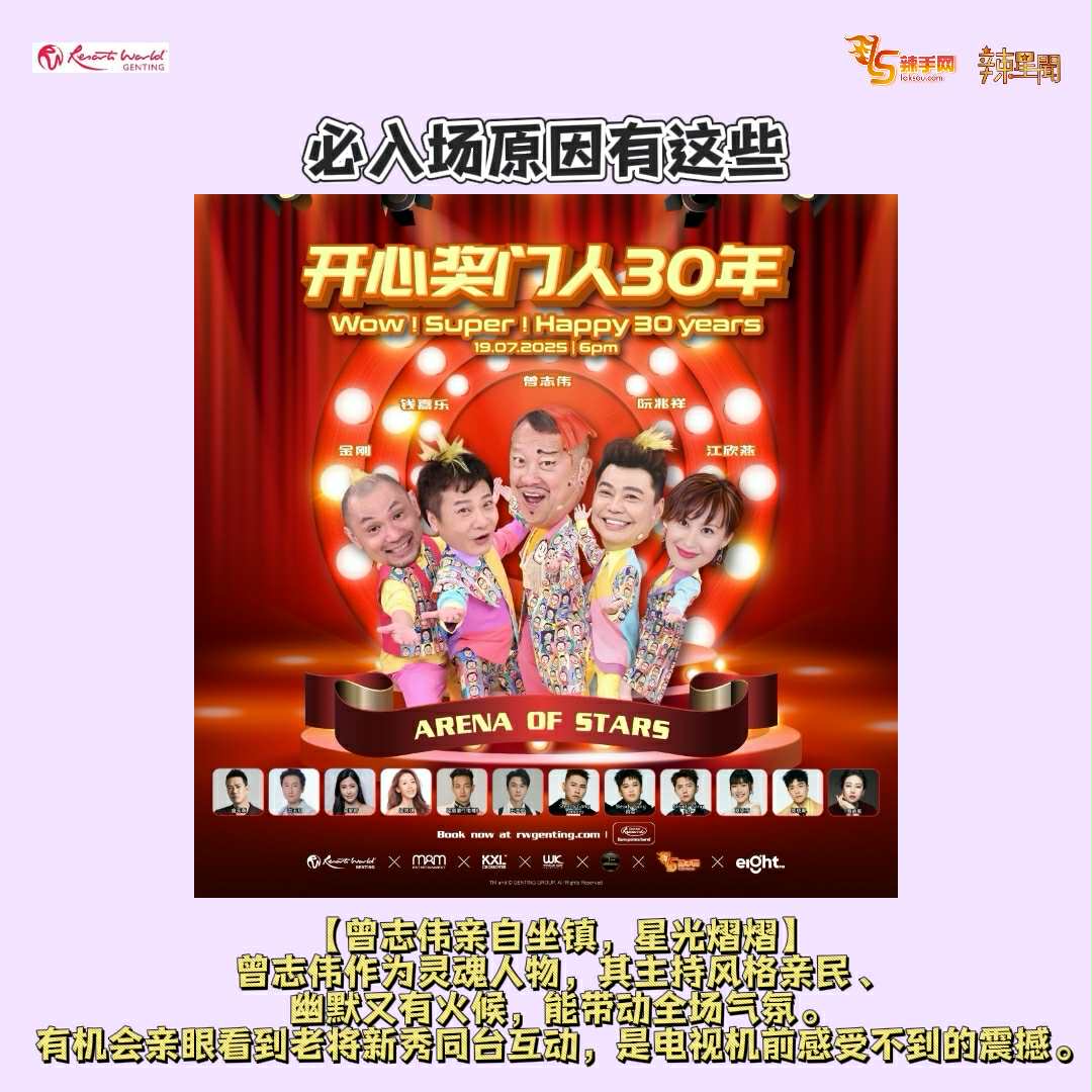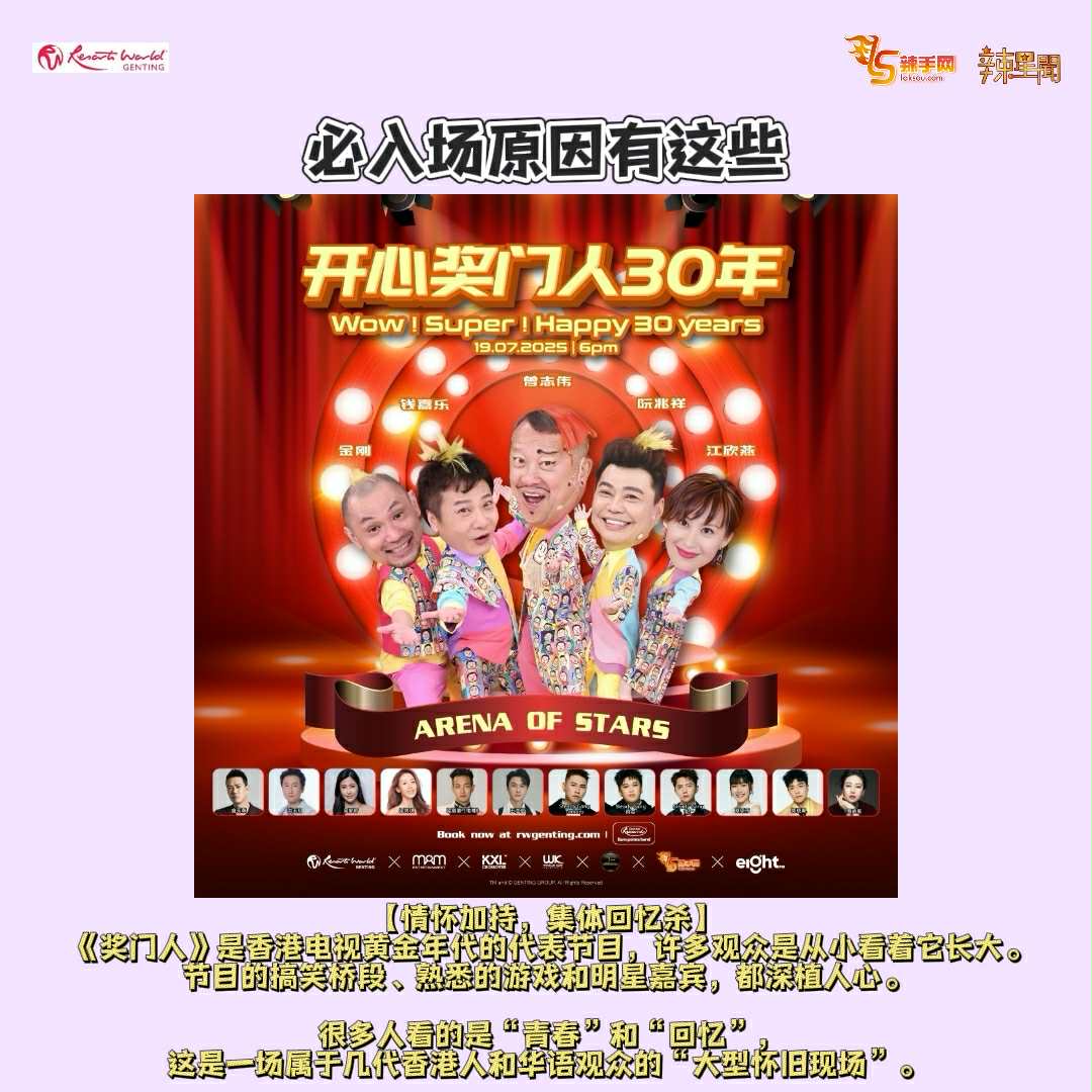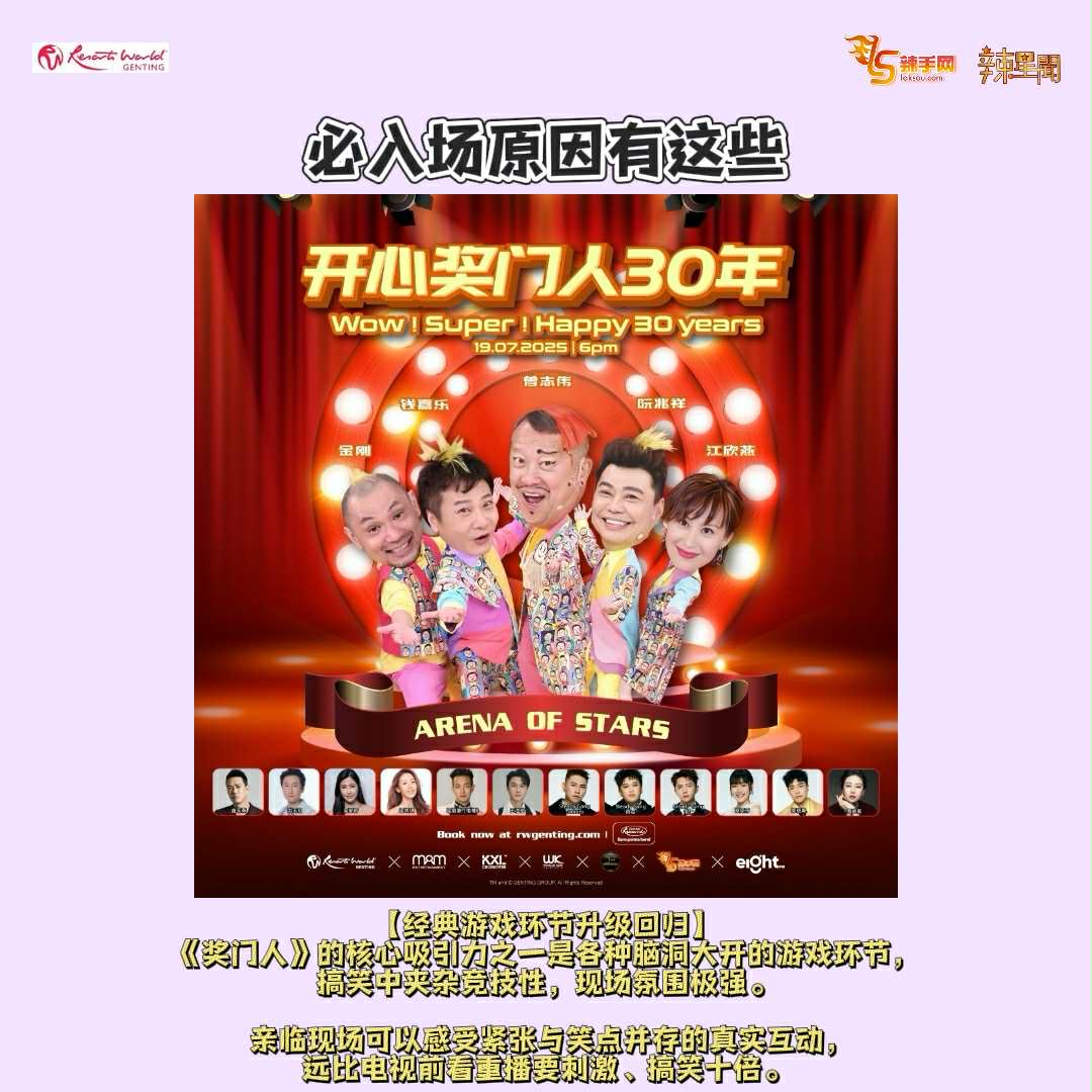 节目灵魂人物——奖门人曾志伟将亲自领军,预告将携一众 “奖门人兄弟姐妹” 强势登场,搞笑回归齐聚云顶世界,共庆30周年盛典!经典游戏、欢乐互动、感人回忆,一次过满足所有人,让全场High爆!
